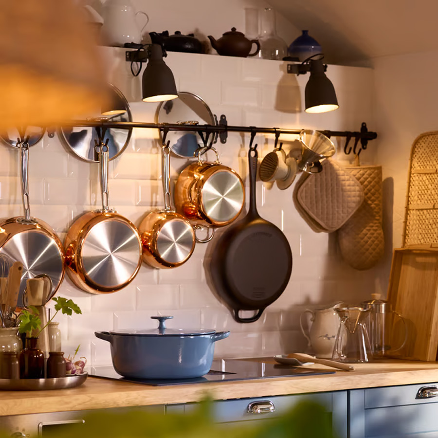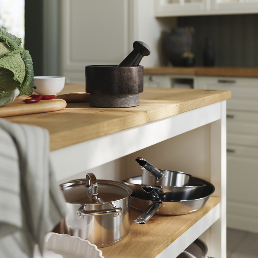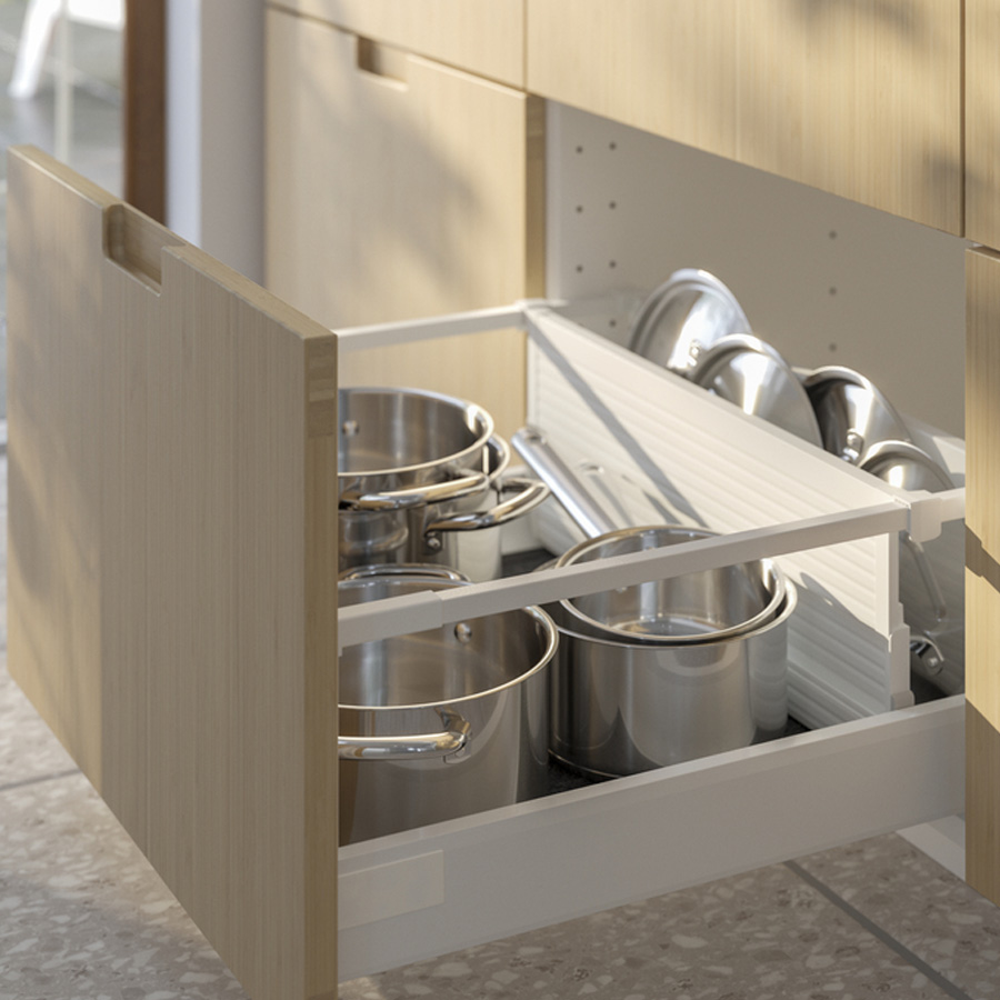 Do you want to know how to organise your pots and pans in a drawer? Create a setup that makes it easy to find the cookware you need – and get it out with as little hassle and noise as possible. The UPPDATERA pegboard drawer organiser comes with 24 adjustable pegs that you can use to keep pots and pans in their designated places. Need a quick fix? An UPPDATERA divider for drawer is an easy way to introduce better order and stability in your kitchen cabinets.