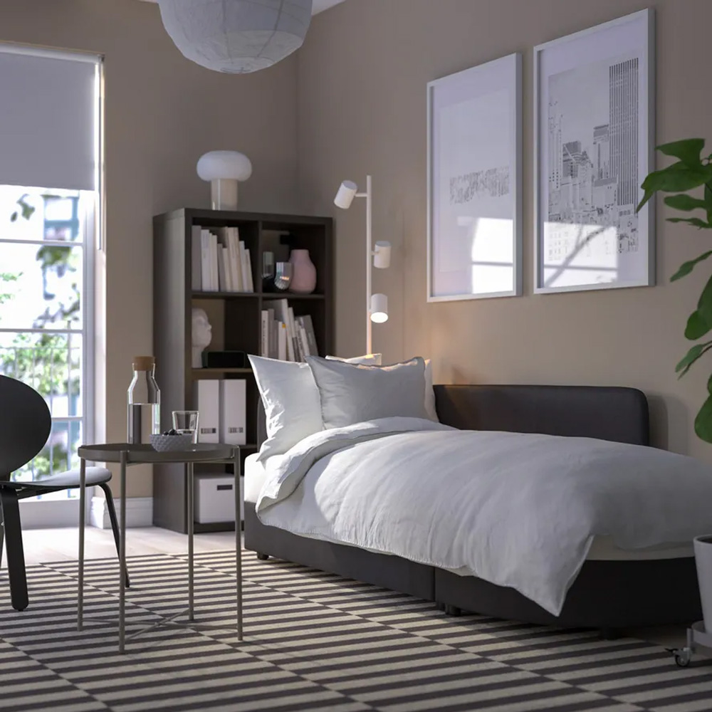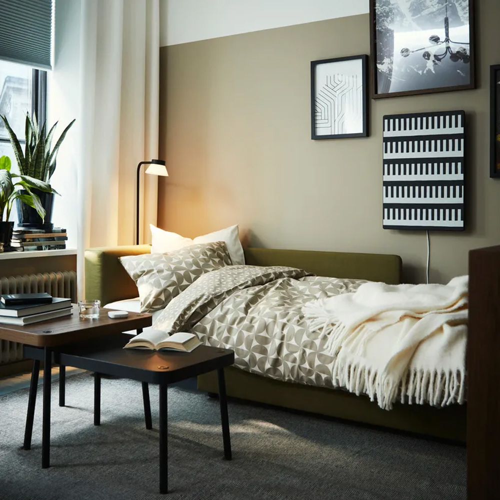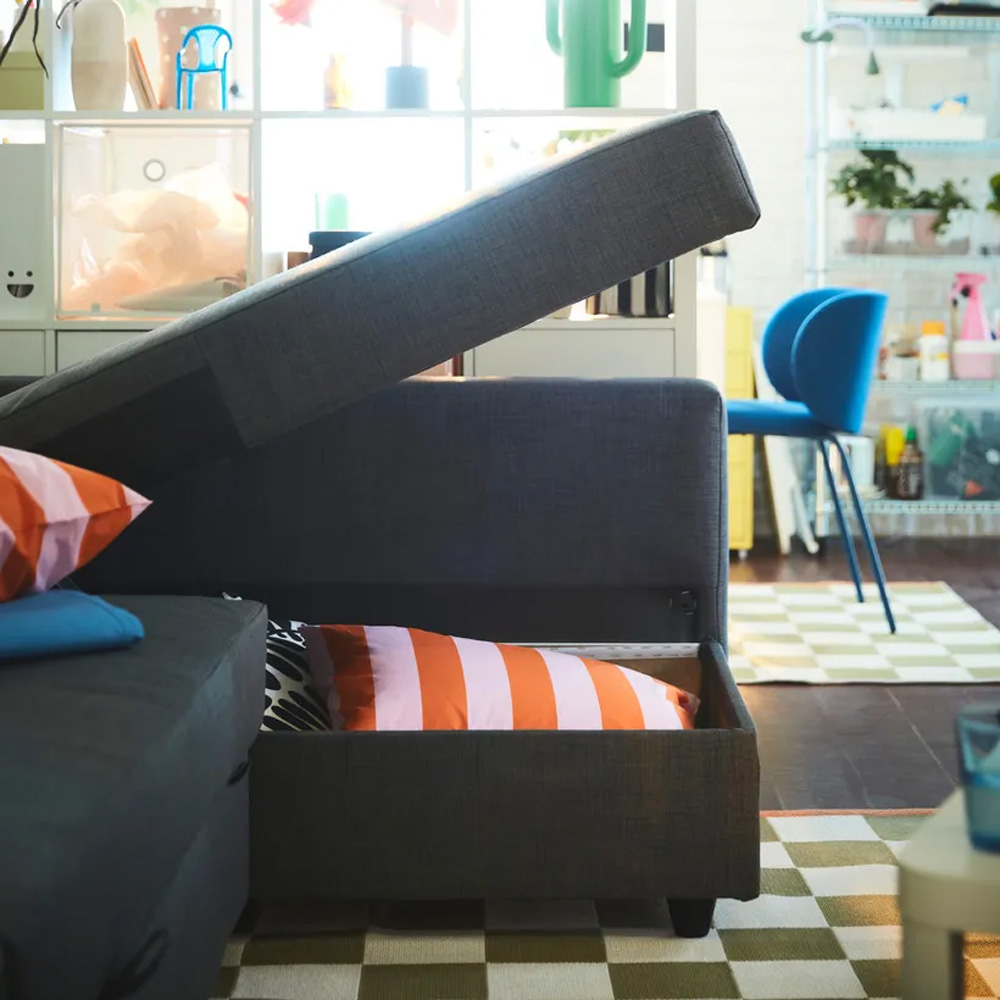 Is it a sofa, a bed, a footstool, a coffee table, a storage space? It’s all of the above! It’s LINDÅKRA, the sofa-bed that swiftly adapts to your liking. This young-at-heart rebel – with an easy-care cover, just to be safe – is a perfect match for someone moving into their first home, and whose sofa and bed needs may change from one instant to the next. Challenge accepted!