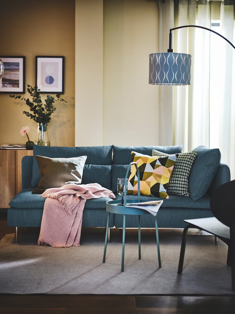 If you have a grey sofa, this is an easy-to-put-together, low maintenance choice. For a simple coordinated expression add textiles in neutral colours like beige, cream and blue, and a pop of red to lift the look. If you’re in the mood for a change, you can switch styles easily as grey goes with everything.