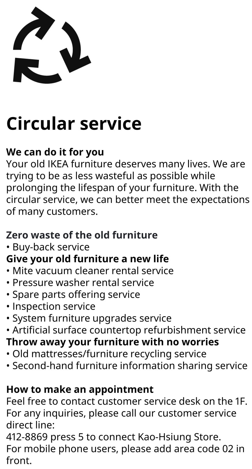 Kao Hsiung Store: Circular service