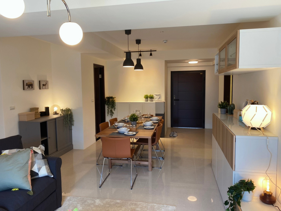 Refreshing and comfortable living space is the core of the design of this case. A large number of light-colored elements of furniture are used, with a small amount of wood grain materials and dark-colored lamps to shape the spatial hierarchy and visual focus.