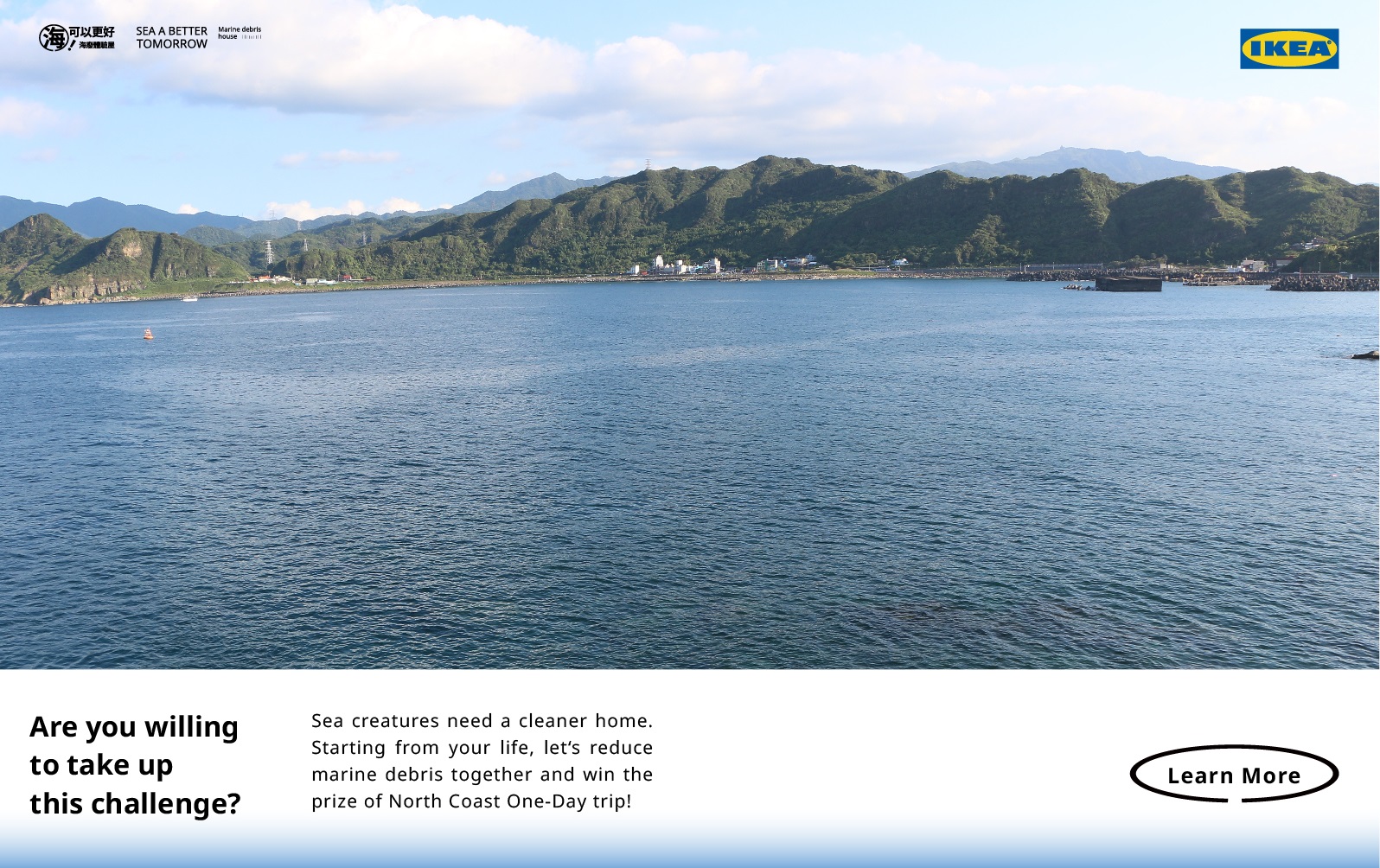 Go visit the Marine Debris House at any IKEA Taipei Store, take part the waste reduction challenge, take a photo with marine debris house and upload it publicly to your personal FB with the specified text, you will be eligible for the lucky draw and have the opportunity to win the North Coast One-Day trip.