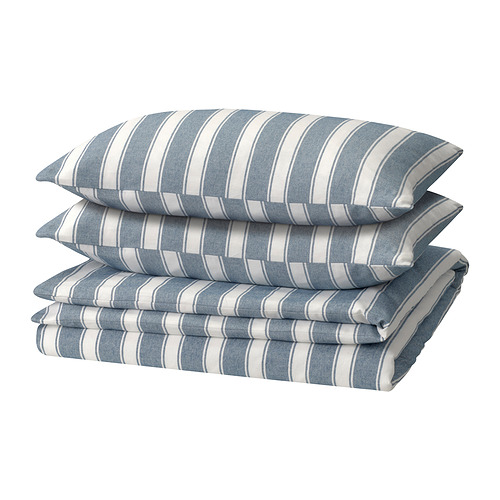 STRUTBRÄKEN Duvet cover and pillowcase, white/blu/str