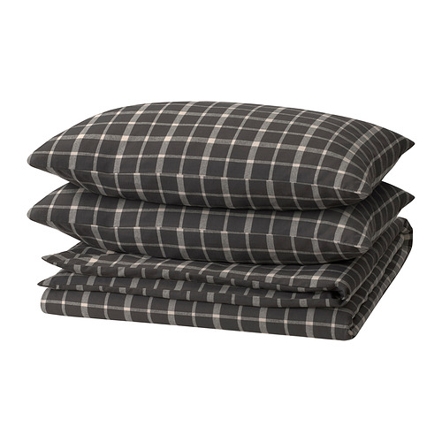 STRUTBRÄKEN Duvet cover and pillowcase, grey/check
