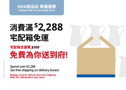 From now until December 31, 2025, enjoy free parcel delivery when you spend over $2,288 on furniture and home décor in a single purchase at IKEA Xindian! (Regular shipping fee for the parcel box is $150)