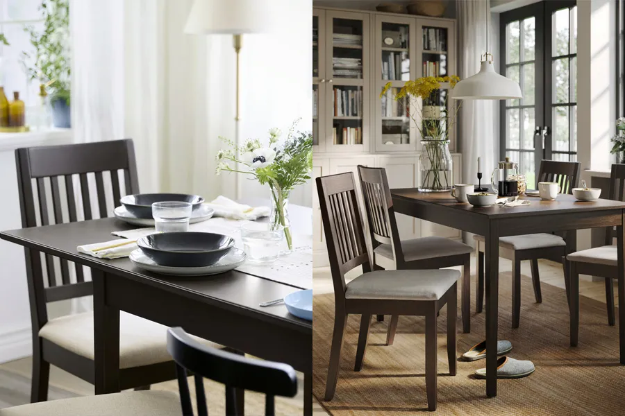 NÄSINGE 餐桌搭配實木貼皮桌面與斜切邊實木桌腳,視覺沈穩且細節講究。可延伸設計讓座位輕鬆從 4 人擴充至 6 人,無論日常用餐或朋友聚會都能輕鬆應對。 看更多餐桌 / 延伸桌