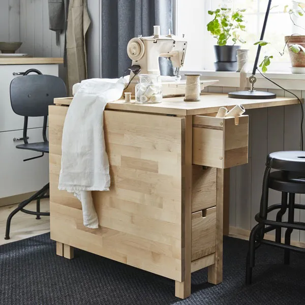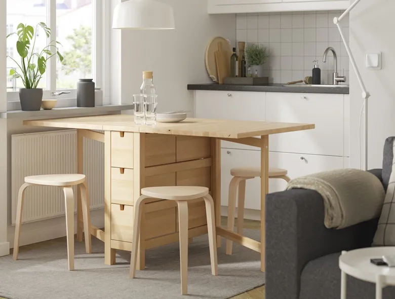NORDEN是IKEA折疊桌經典標誌,樺木款最為堅固百搭,並能提升整體空間明亮度。