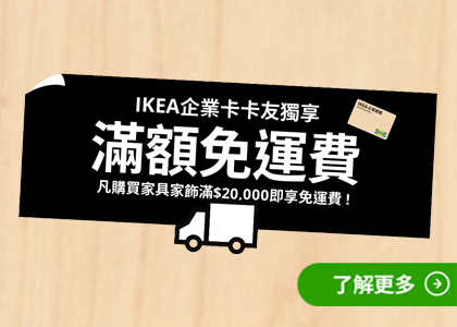• IKEA企業業務專區:週一到週五 10:00 - 20:00 (週末及國定假日 11:00-20:00)