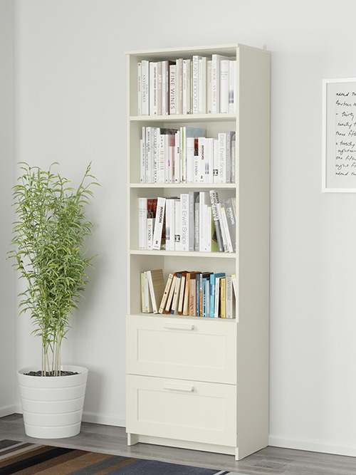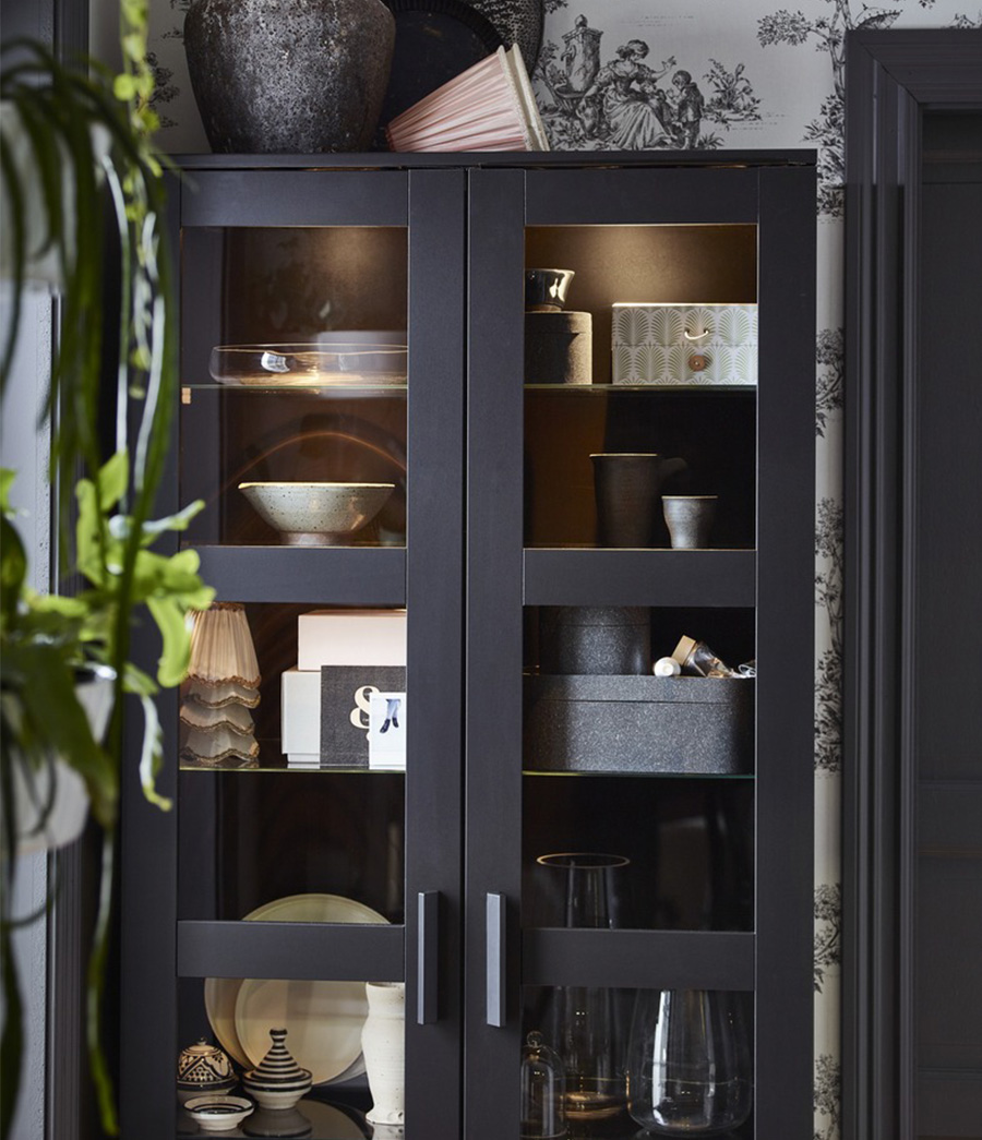 你可以將電視櫃、書櫃以及壁櫃,甚或是任何壁面收納家具做結合,以創造出更大的收納空間 。富有設計感的BRIMNES系列協助你將客廳和臥室所需物品都收納其中,讓居家空間更加有有條有理,配合透明玻璃或是封閉式門片更能讓空間呈現整齊簡潔。