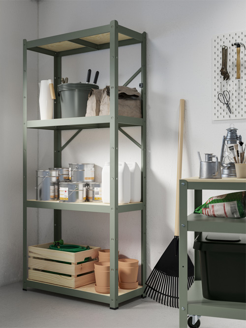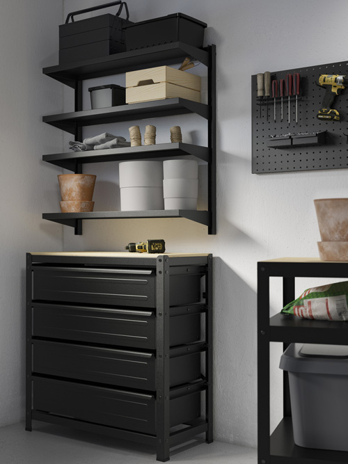 3. 完成後可依需求添加配件,如掛勾、儲物櫃或收納盒,讓收納層架更完整。
