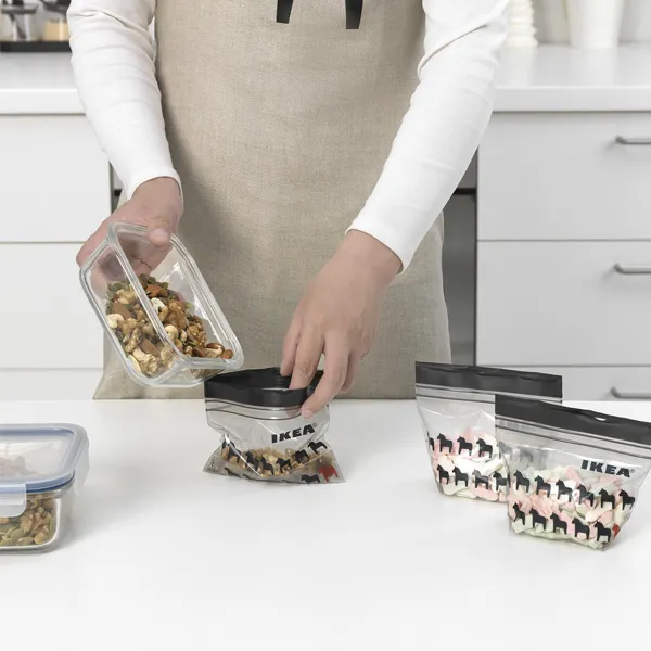 IKEA最熱銷ISTAD保鮮袋,雙層夾鏈設計有更好的隔絕性,能保存食物更長時間。ISTAD保鮮袋的材料大部分取自甘蔗產業的可再生材料,而且可以回收處理。這是IKEA邁向長期目標的方式,確保所有IKEA塑膠產品以回收或可再生材料製成。