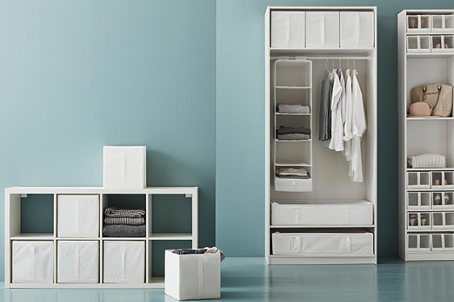 如果你的衣櫃或是抽屜櫃打開總是一團亂,SKUBB收納系列就是你的絕佳救星!包含掛袋、鞋盒和不同大小的儲物盒,讓你輕鬆區分厚薄不同的衣服,內衣褲和其他飾品,連鞋盒收納都兼顧了,不使用時盒子也可攤平收藏,不佔多餘空間。