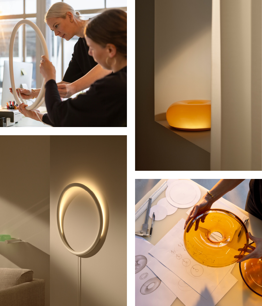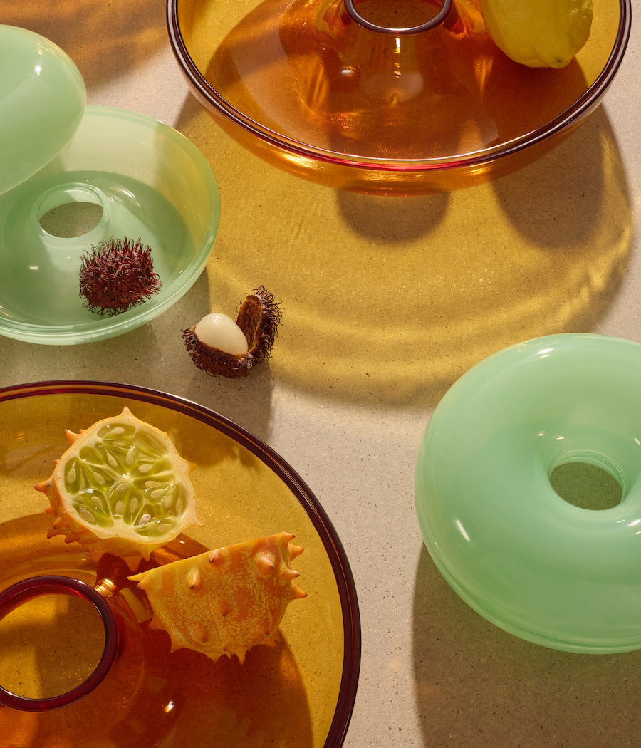 甜甜圈是Sabine Marcelis的經典設計形狀之一,VARMBLIXT系列有兩款產品也採用這個形狀,包括有兩個大小的精緻玻璃碗,還有一盞壁燈/桌燈。