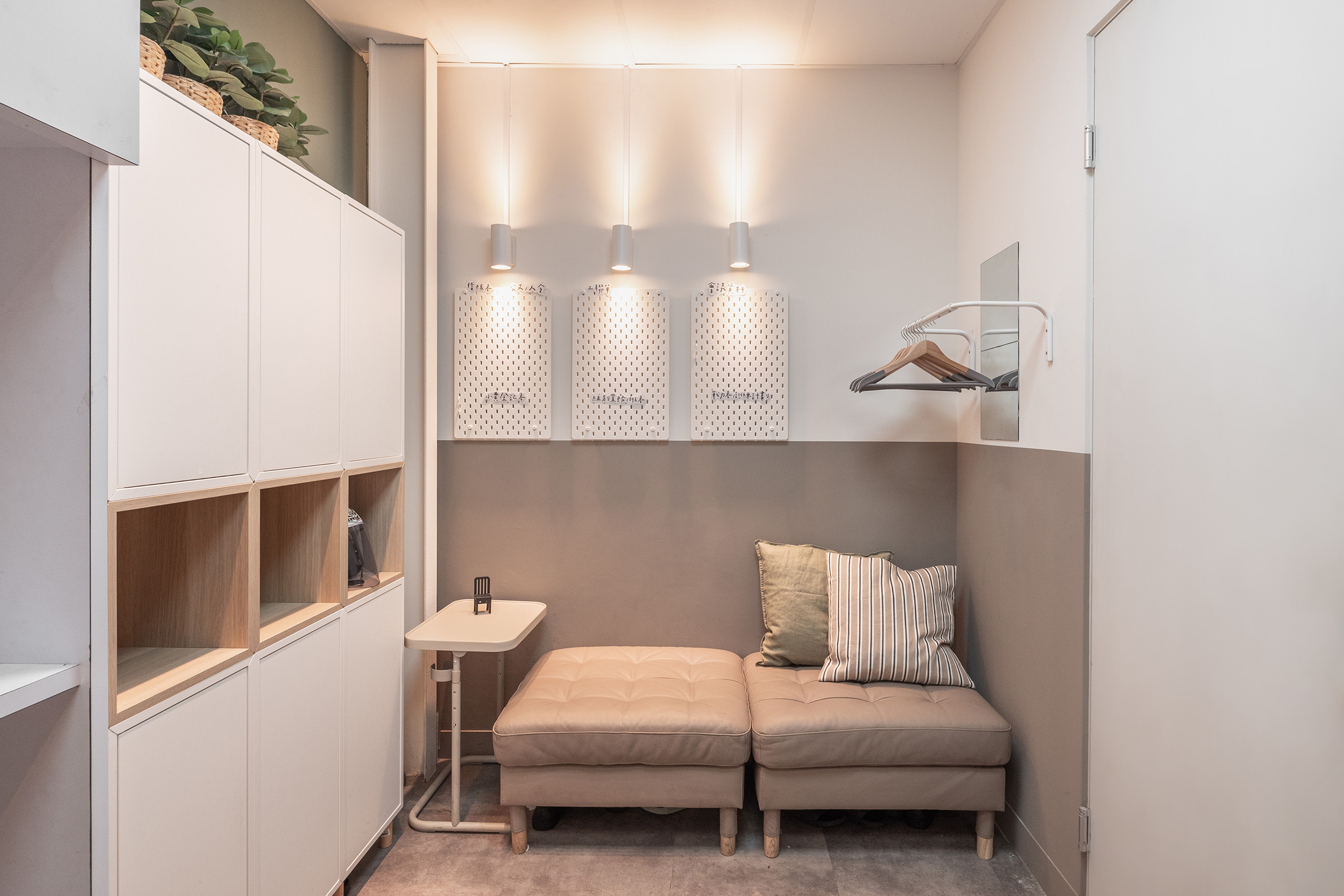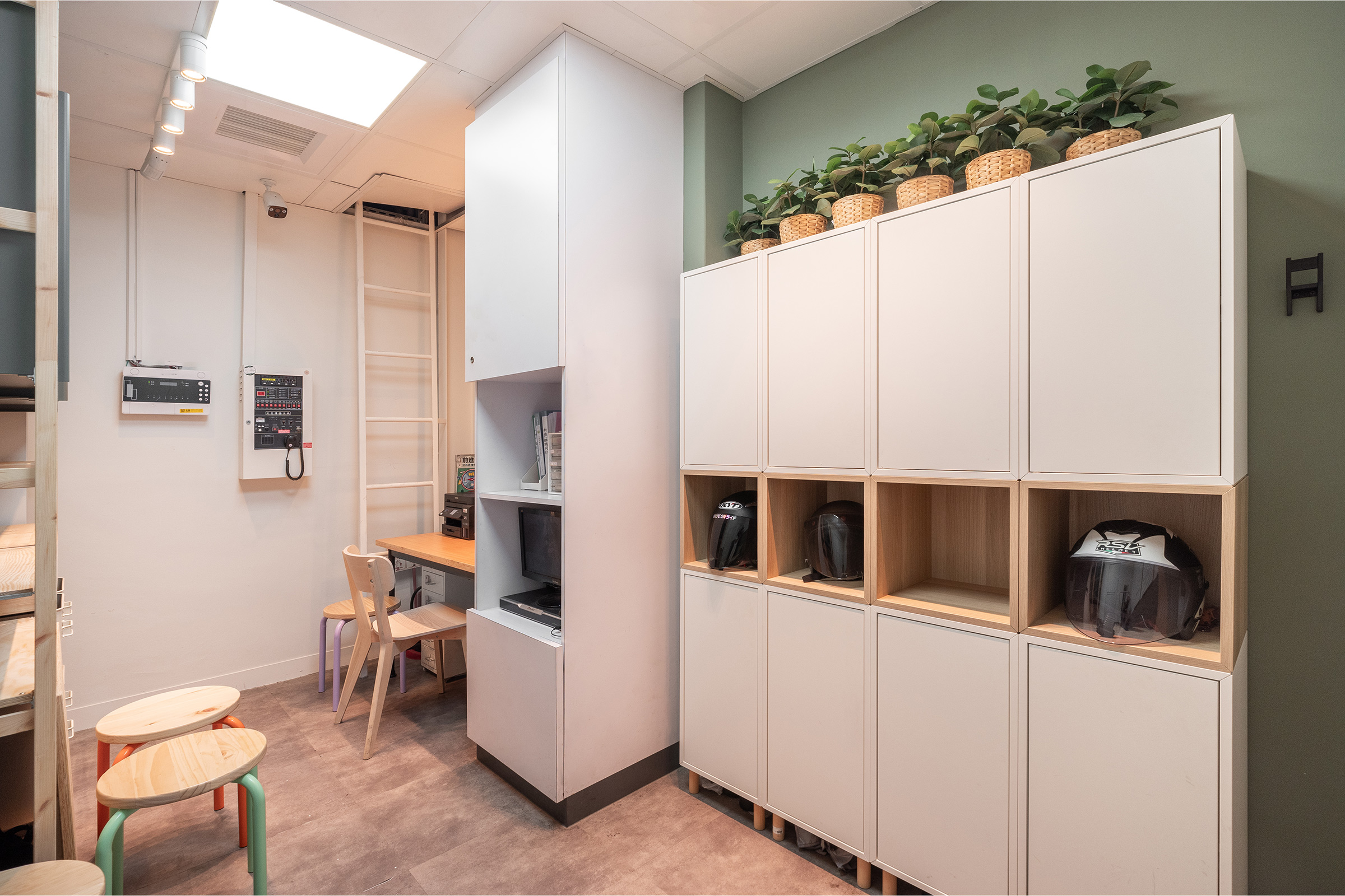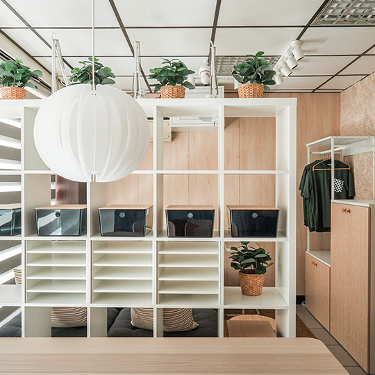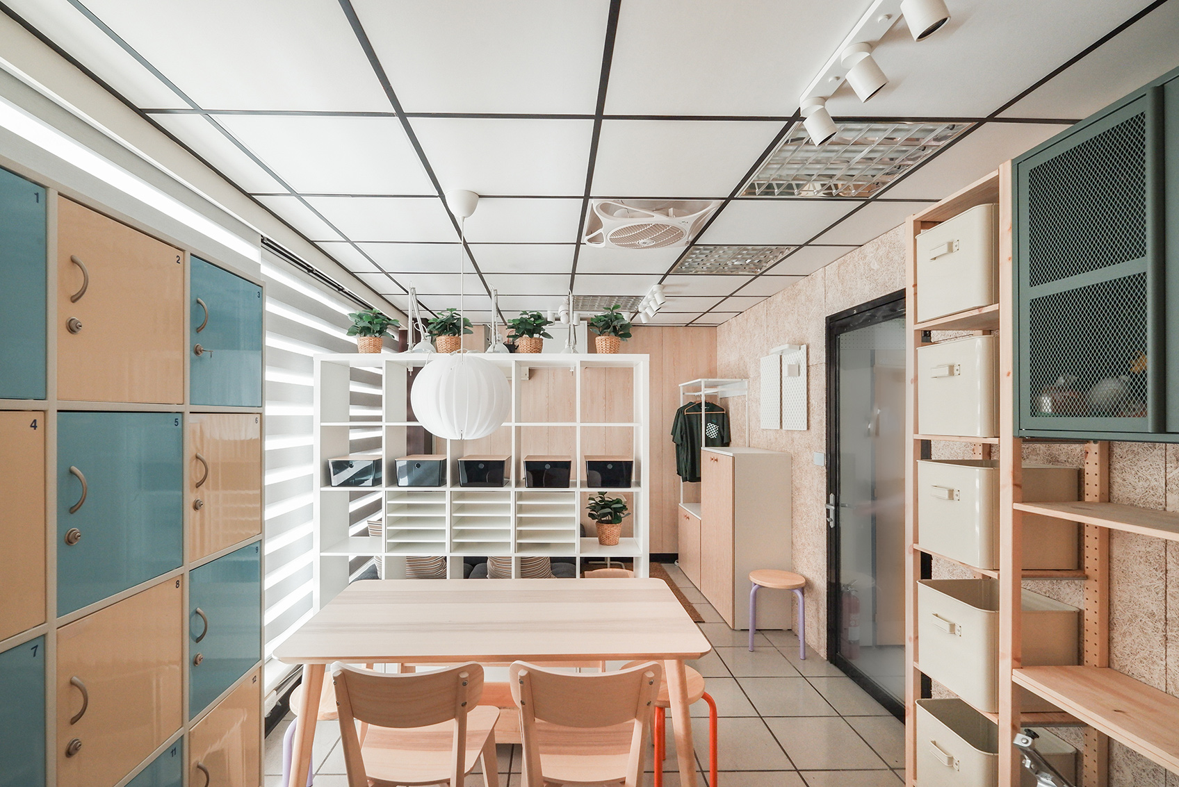 IKEA企業業務與石二鍋攜手合作,將三間員工休息室打造為兼具多功能與美感的舒適休憩區。由於空間有限,仍需要滿足休息、用餐、辦公和收納的需求,因此需充分利用空間並符合「舒心豐盈」理念。 「舒心」體現於低飽和度的色彩,搭配點綴式的撞色,營造出溫和且不失趣味的視覺效果。「豐盈」則表現在有限的空間內,規劃出兼顧辦公、休憩及收納的功能,包涵將收納空間垂直向上延伸,選擇具有高度彈性的家具,如附帶摺疊桌的收納櫃及牆面洞洞板,讓空間使用最大化。 這次改造在有限的空間內實現了多功能需求。期望石二鍋的員工可以在這個新的空間盡情放鬆。