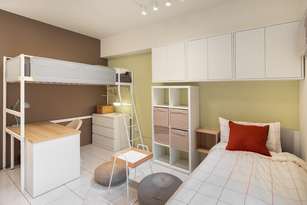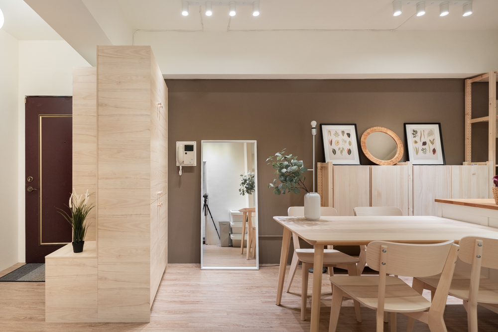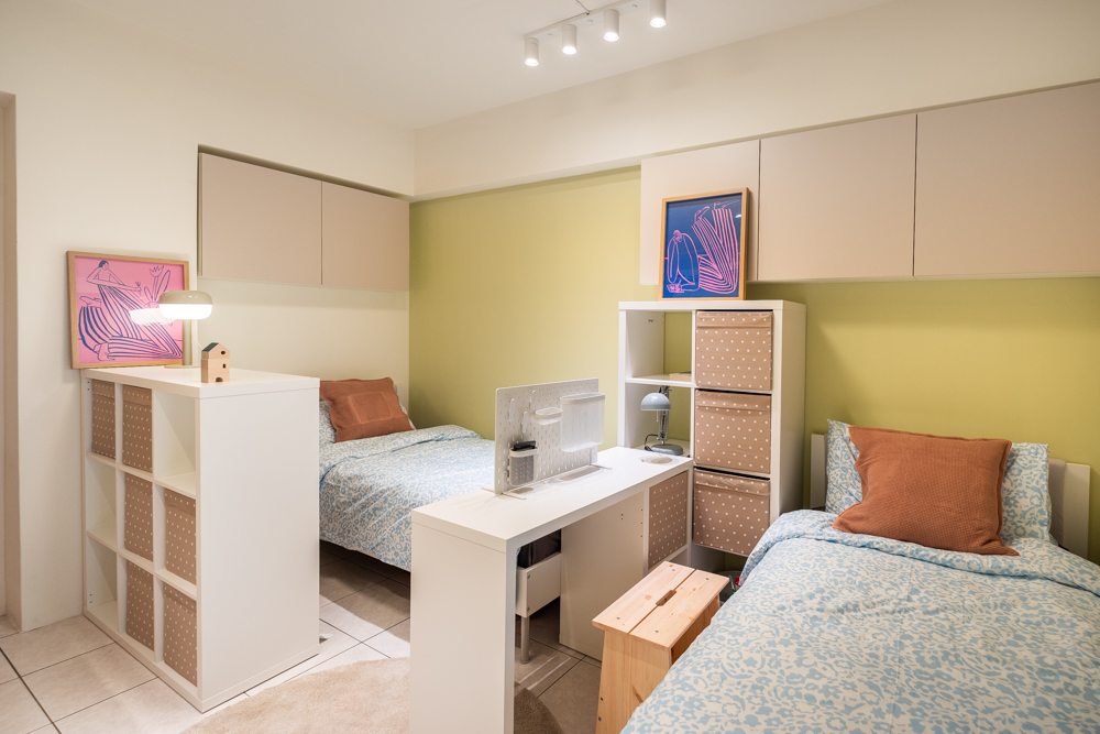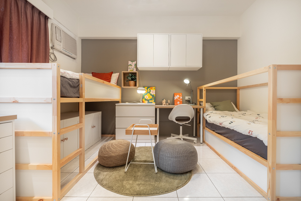 石二鍋位於新北三重的女生宿舍,共有七位北漂同仁居住。由於北漂工作,除了要讓空間有家的感覺兼具隱私性,也需考量行李箱和衣物的收納。針對這些挑戰,IKEA企業業務與石二鍋合作,採用「大空間小天地」的設計理念,旨在打造一個既具隱私感、又舒適和溫暖的空間。