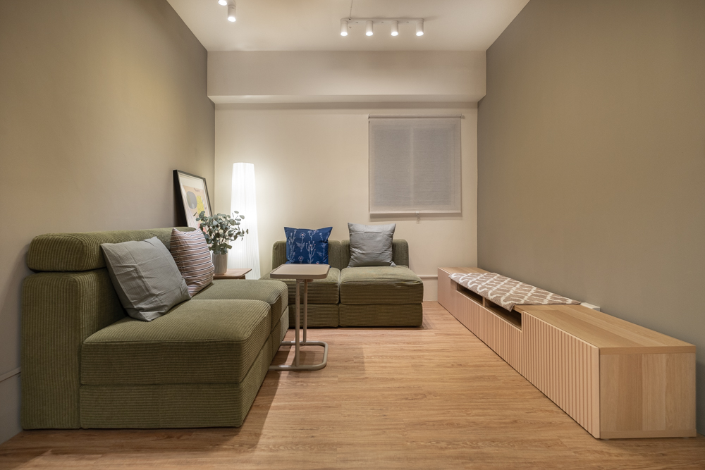 宿舍在大量利用牆面來設置儲物系統,最大化空間使用並提升收納效率。餐廳與客廳保留寬敞的公共空間,讓餐桌中島與餐桌的錯落的延伸設計,讓同仁可以選擇坐在一起聊天,或是專注做自己的事,而客廳沙發區則提供了放鬆與互動的場所。房間有單人房與雙人房,每個人都有配置自己的床、衣物儲放空間,以及桌子,且經過規劃,透過家具選擇欲配置,讓雙人房的同仁也能保有私密空間,在個人的小天地可以盡情放鬆。