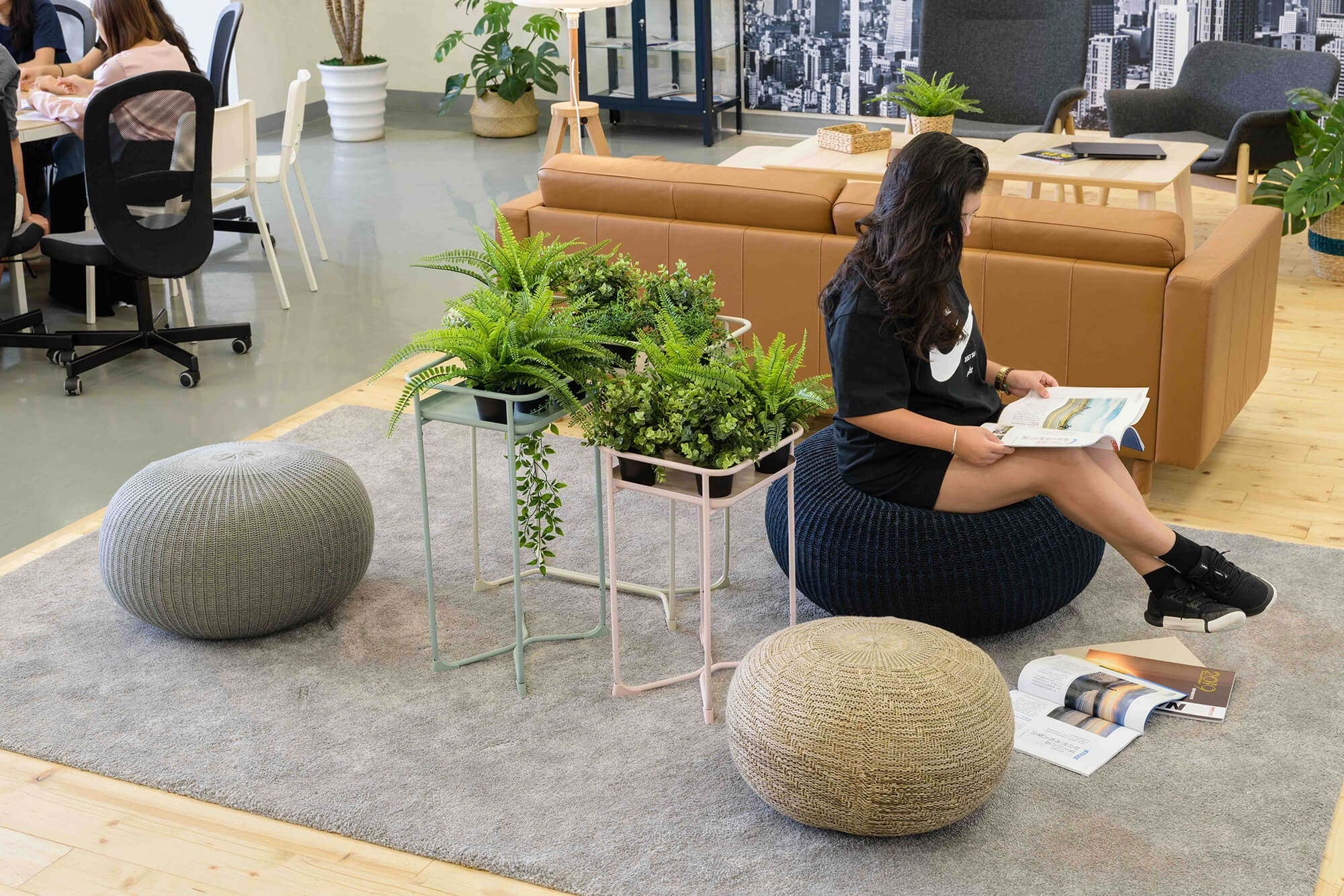 身爲使用單位,需要長時間與國內外產官學界舉辦各式論壇、國際產業串接與媒合,全升降桌的辦公空間促成了更多的創意發想,符合人體工學的辦公環境更是讓科技部的夥伴們在工作忙碌之於更能保有良好的健康體態與體力。休憩區的多功能使用更是讓需要長時間辦公與彈性規劃活動多了無限可能;會議室除有能一次容納20多人的大型長桌外,更保有適合多組小型討論的彈性設計。另外,沙發區更是工作忙碌之餘的最佳休憩小綠洲。