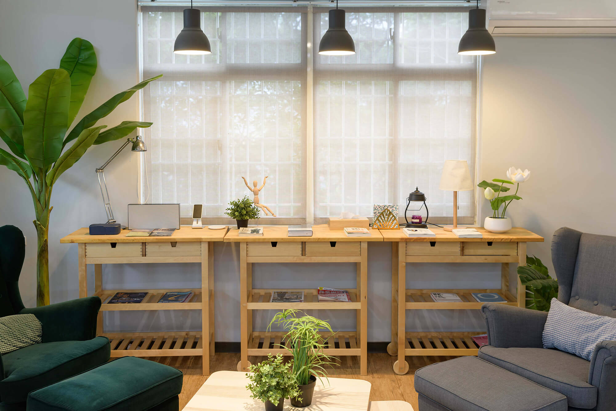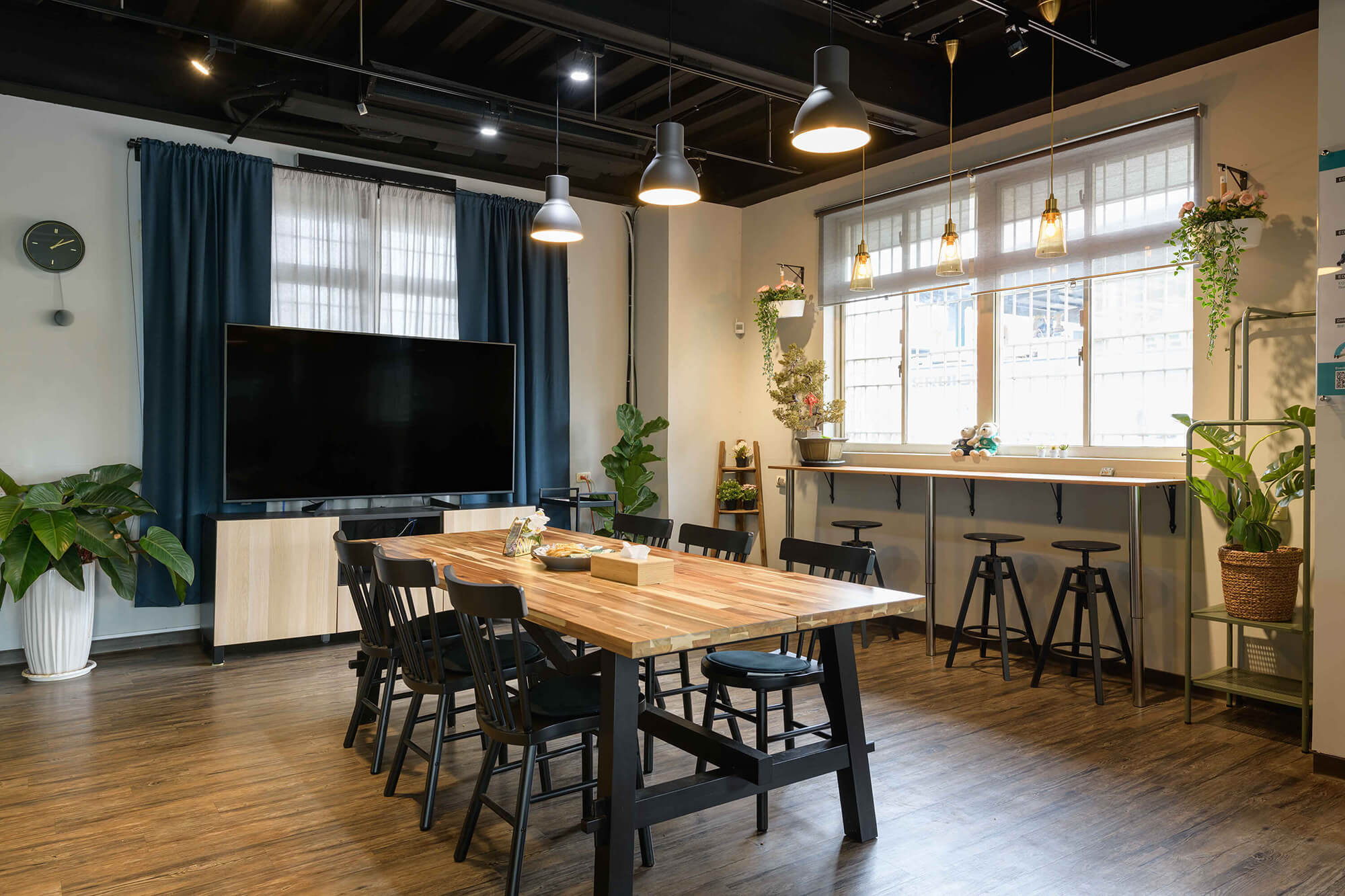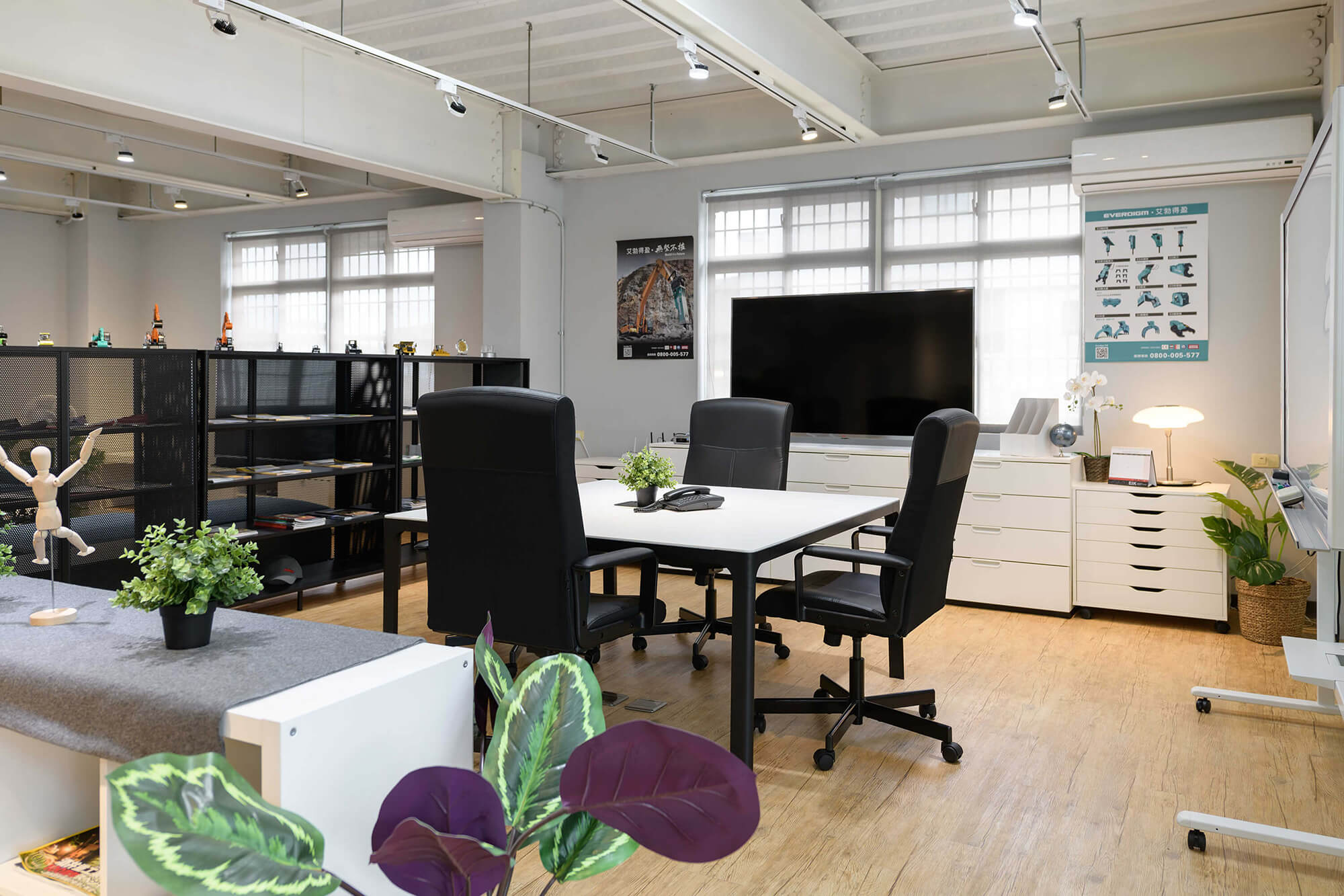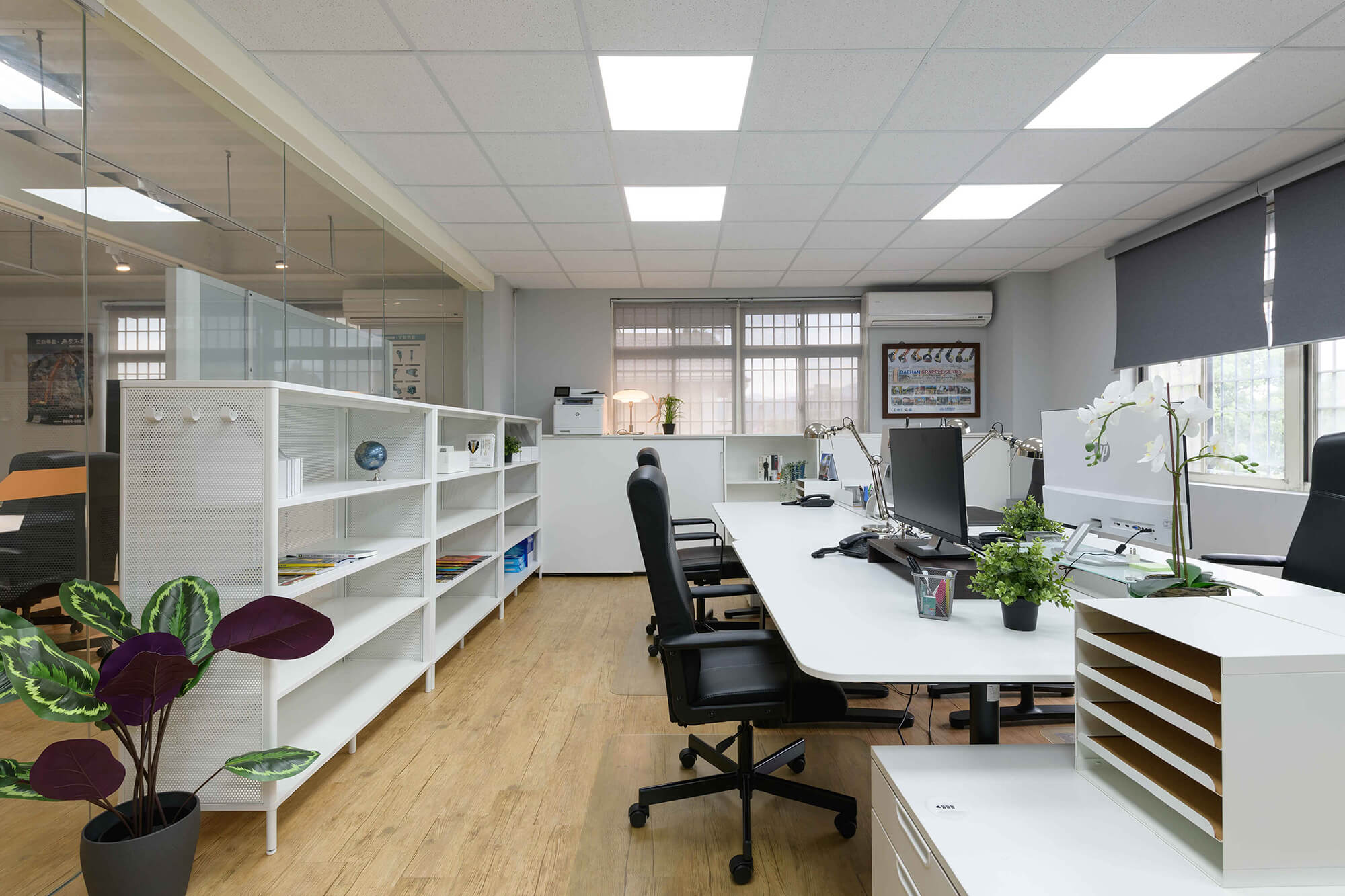 業主希望給每個來訪的客人營造一個輕鬆舒適的環境,更提供一個安靜不受打擾的會議室。業主也特別規劃開放式的用餐空間,甚至兼具工作及茶水間的功能,讓員工能在這開放的空間中得到更多情感上的交流及休息,這樣多功能的空間無論做何種的活動都會非常的有彈性及合適。