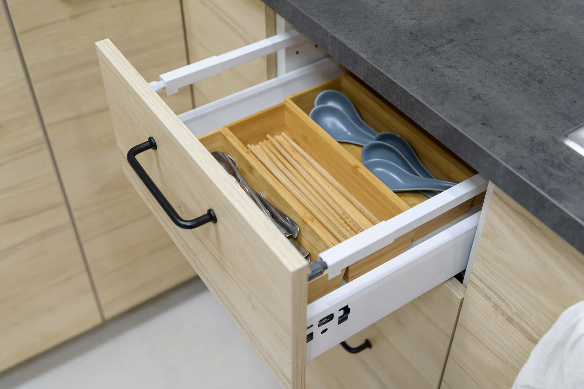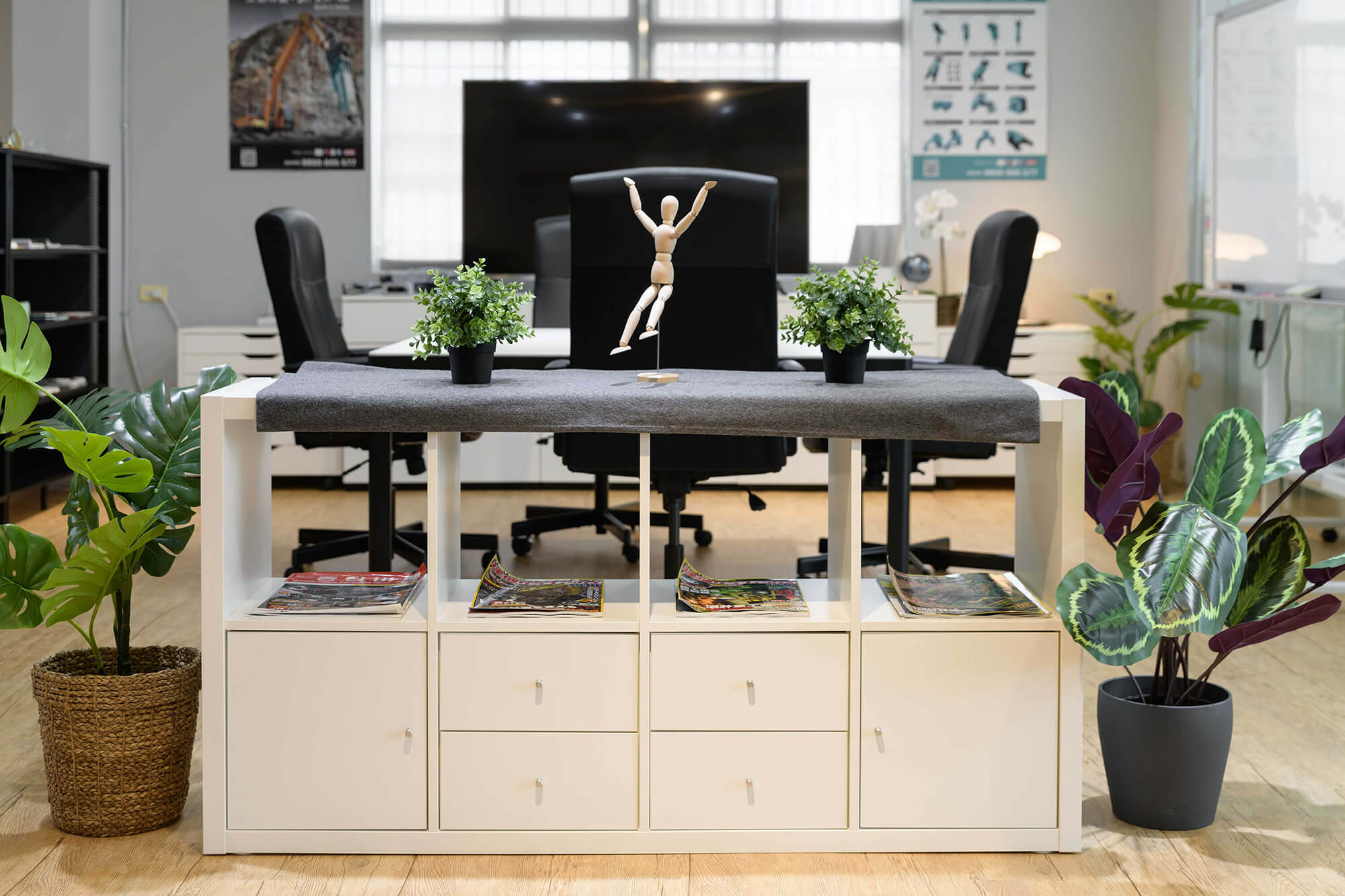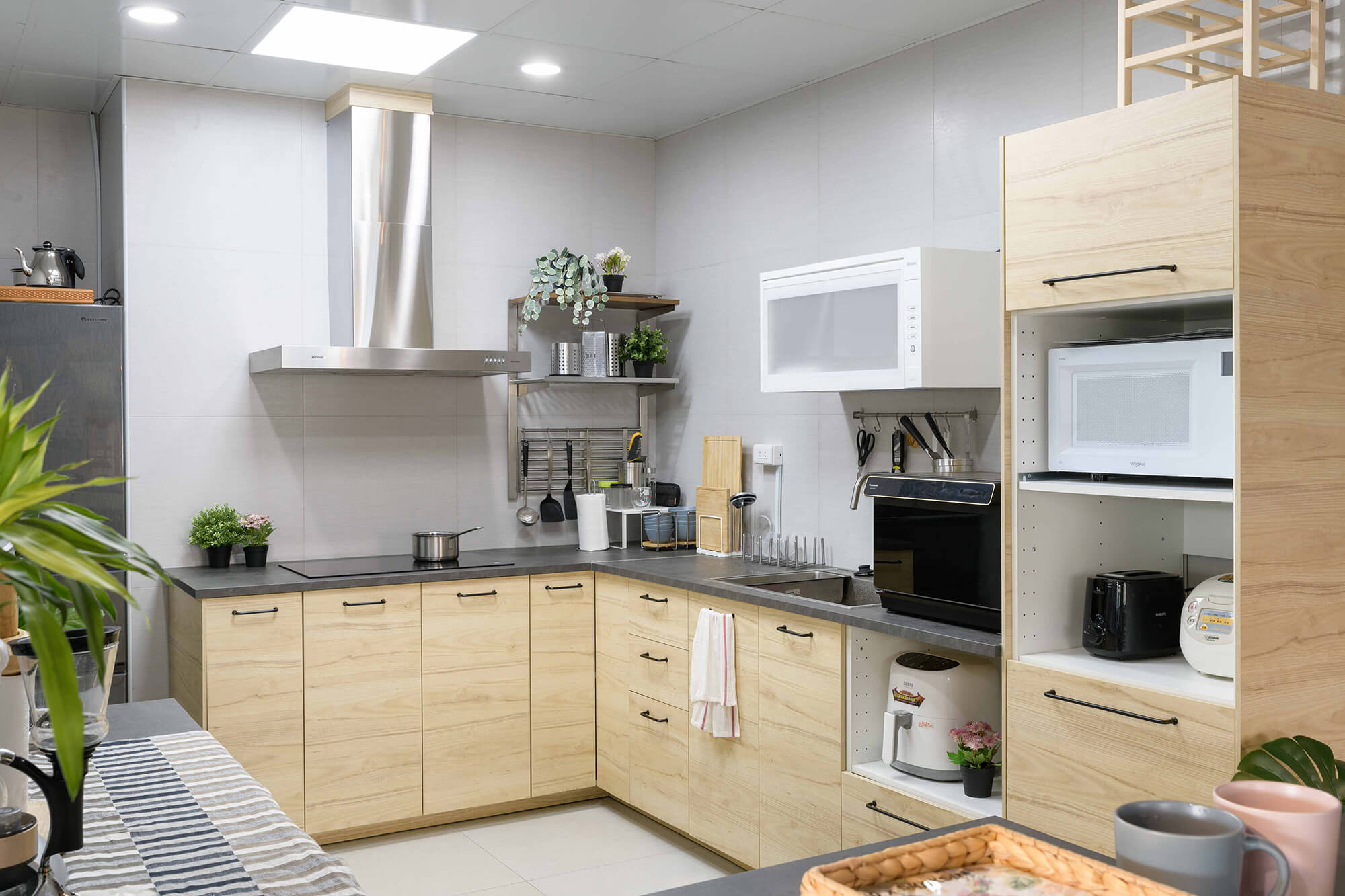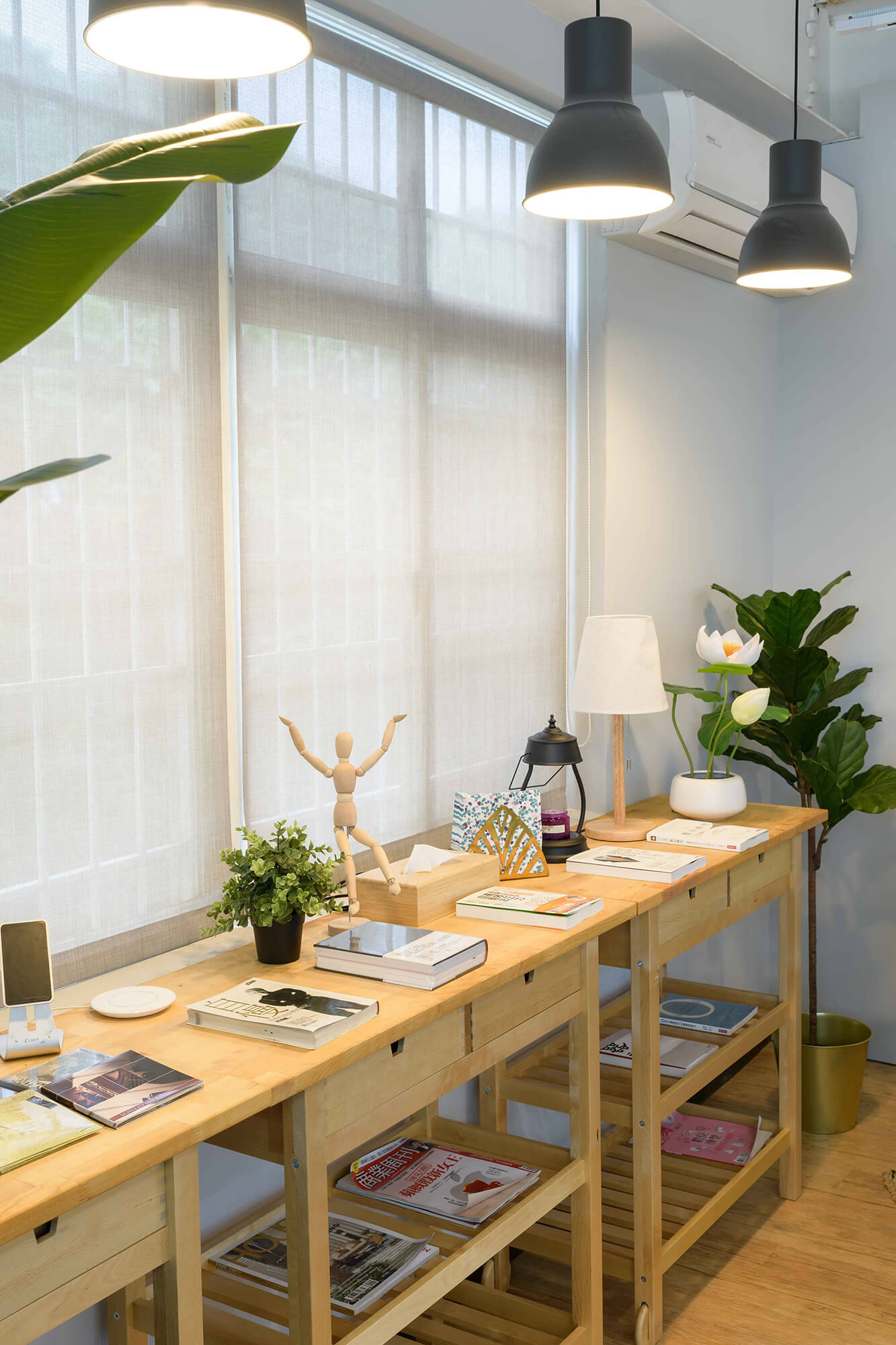 業主希望給每個來訪的客人營造一個輕鬆舒適的環境,更提供一個安靜不受打擾的會議室。業主也特別規劃開放式的用餐空間,甚至兼具工作及茶水間的功能,讓員工能在這開放的空間中得到更多情感上的交流及休息,這樣多功能的空間無論做何種的活動都會非常的有彈性及合適。