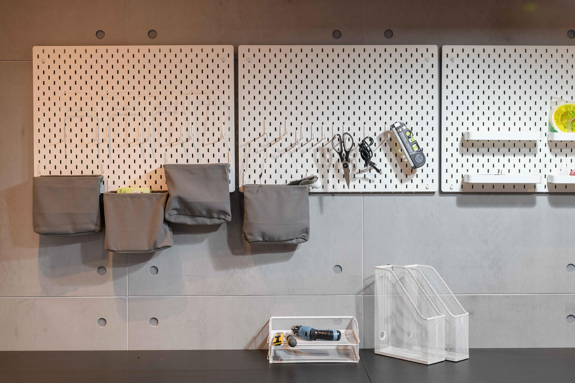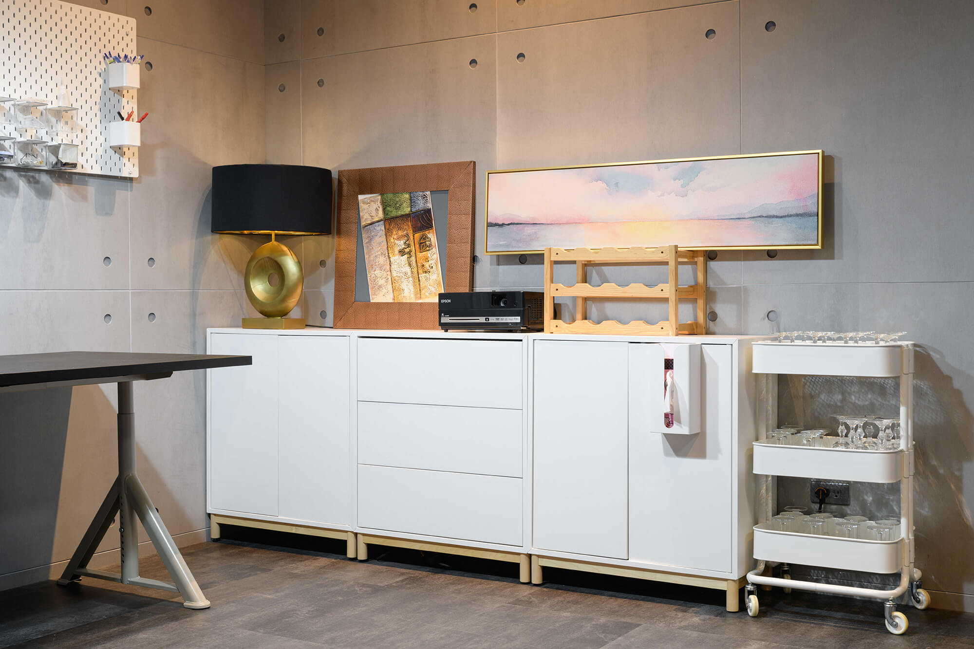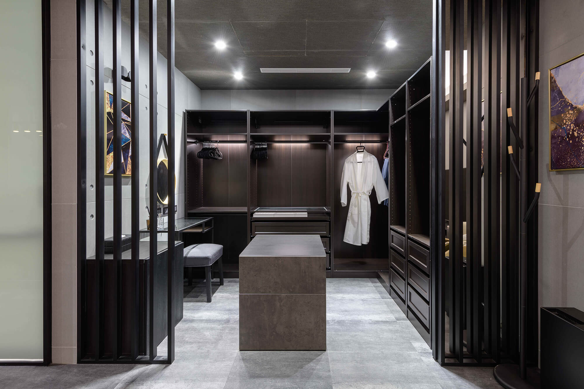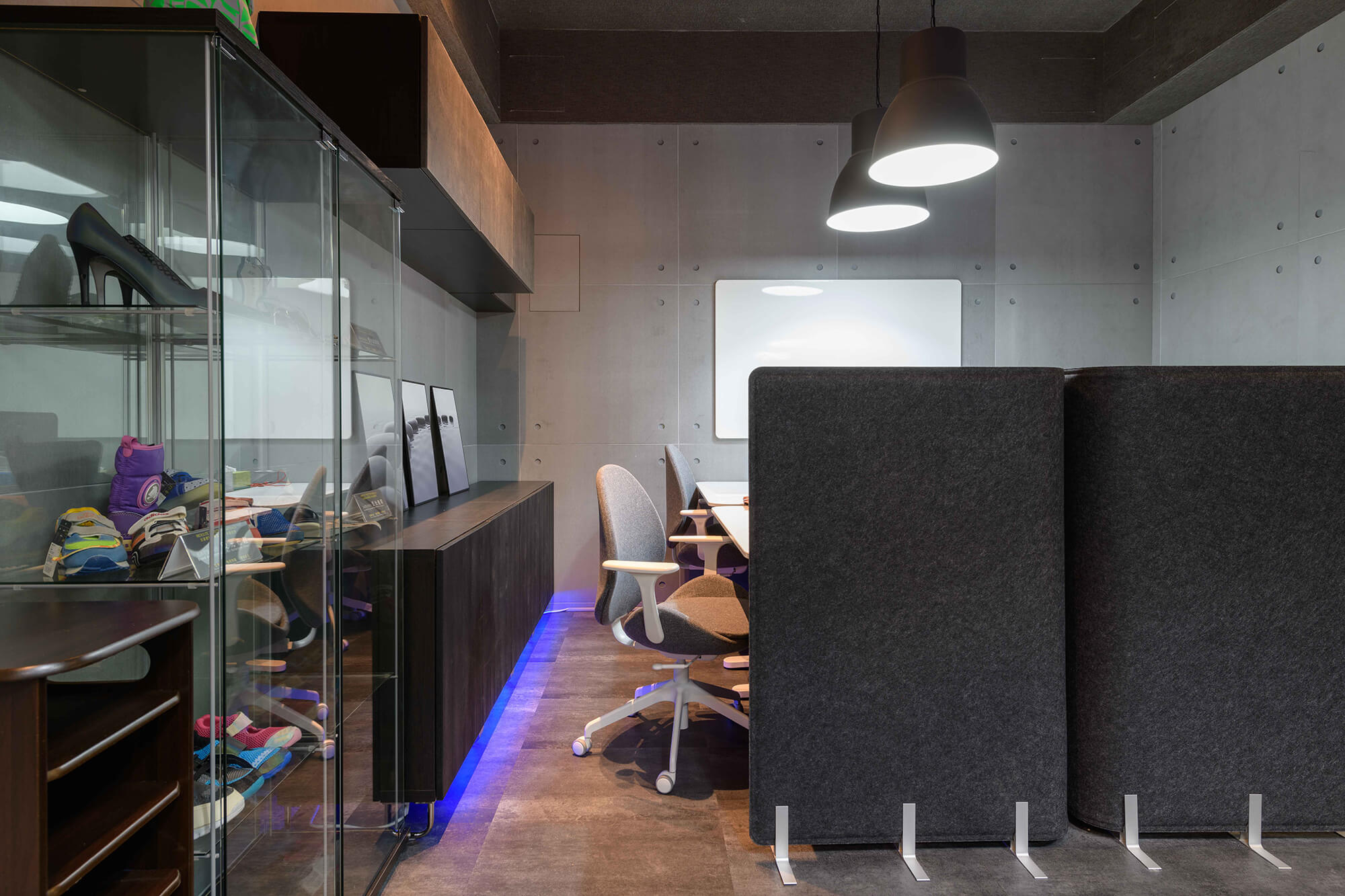 住辦合一 一樓為辦公室使用,二樓為私人房間(偏向招待所),以強烈工業風為主題,前面全採用清水模板,搭配我們大量黑,灰以及實木商品呈現工業現代的感覺。