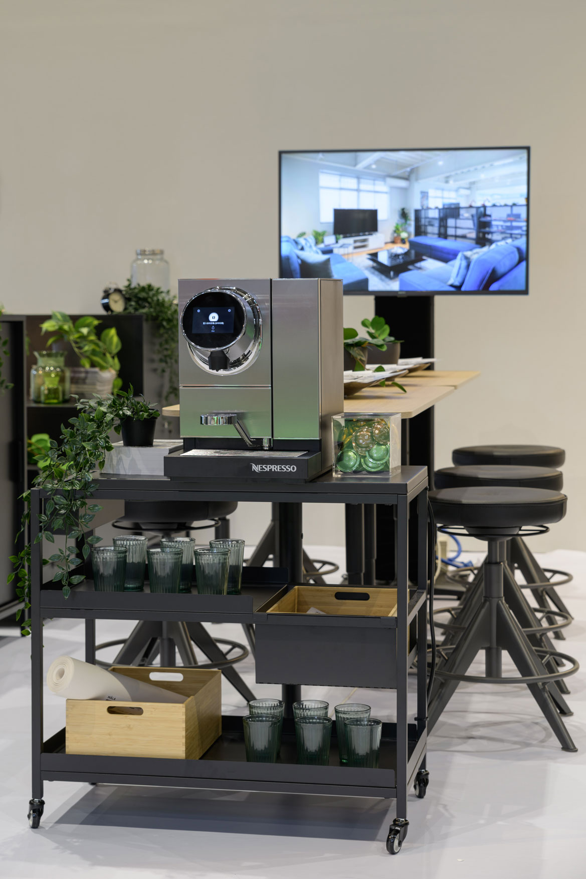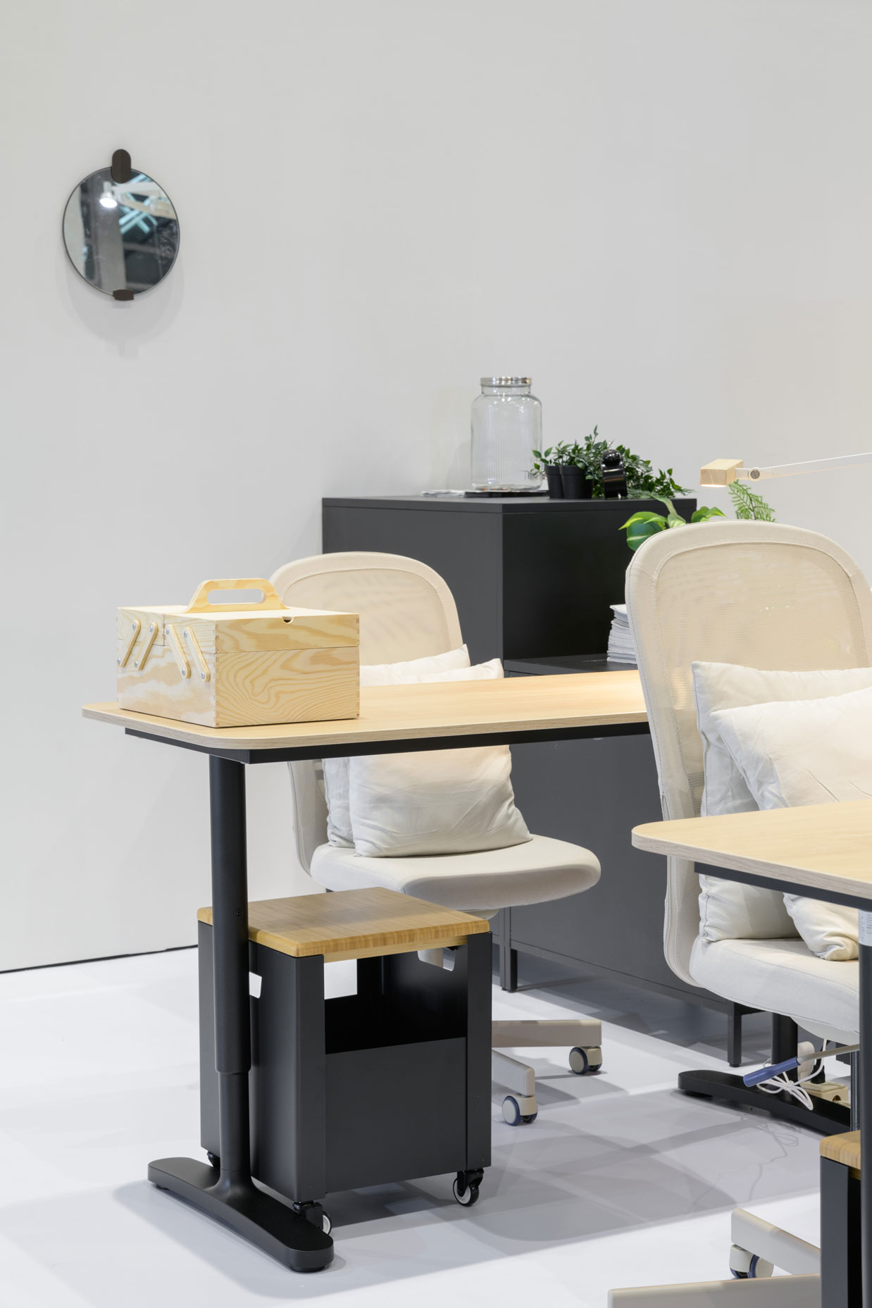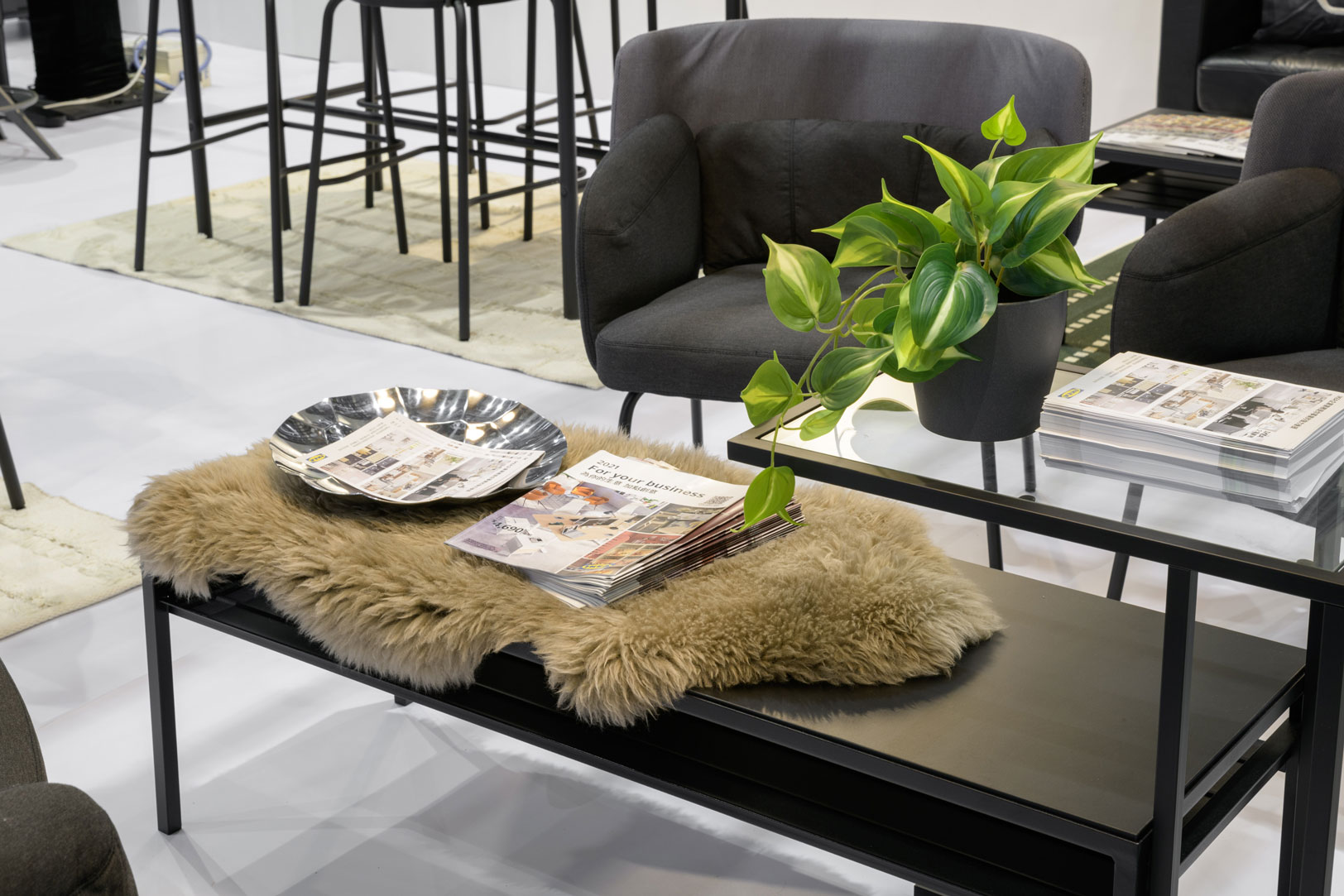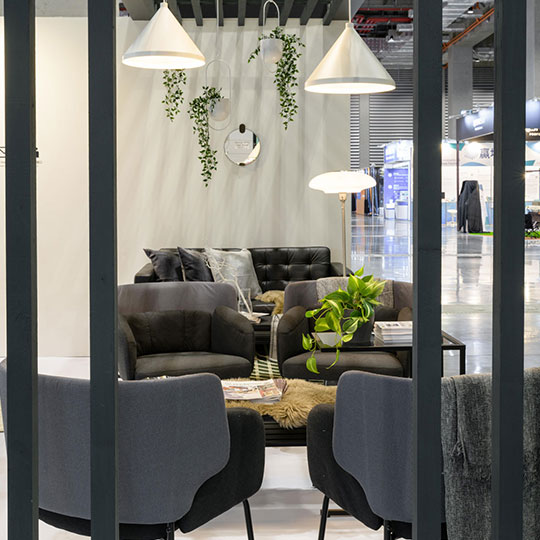 以IKEA for Business 品牌精神發想,以簡單俐落的黑、白色當作基底,襯托出IKEA 高單價商用產品的質地。整體空間區域分為辦公區、會議討論區以及VIP休憩區,與現場其他單位的高彩度佈置形成反差,選擇極簡的呈現手法,讓整體展區更加突出吸睛。