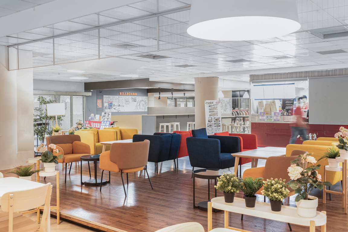長榮大學與IKEA企業業務合作,改造學生餐廳,打造多功能空間。採用北歐及現代風格設計,加上自然元素如綠色植栽、親近感的竹製品及圖案裝飾等,再用鮮活的色彩點綴,搭配各式材質及造型的燈光,營造活潑化及明亮化的空間,目的是希望師生在舒適的用餐氛圍中抒放身心。而除用餐時間外,學生可以來這裡看書、三五好友小聚、團體討論或開會、悠閒地喝個下午茶。