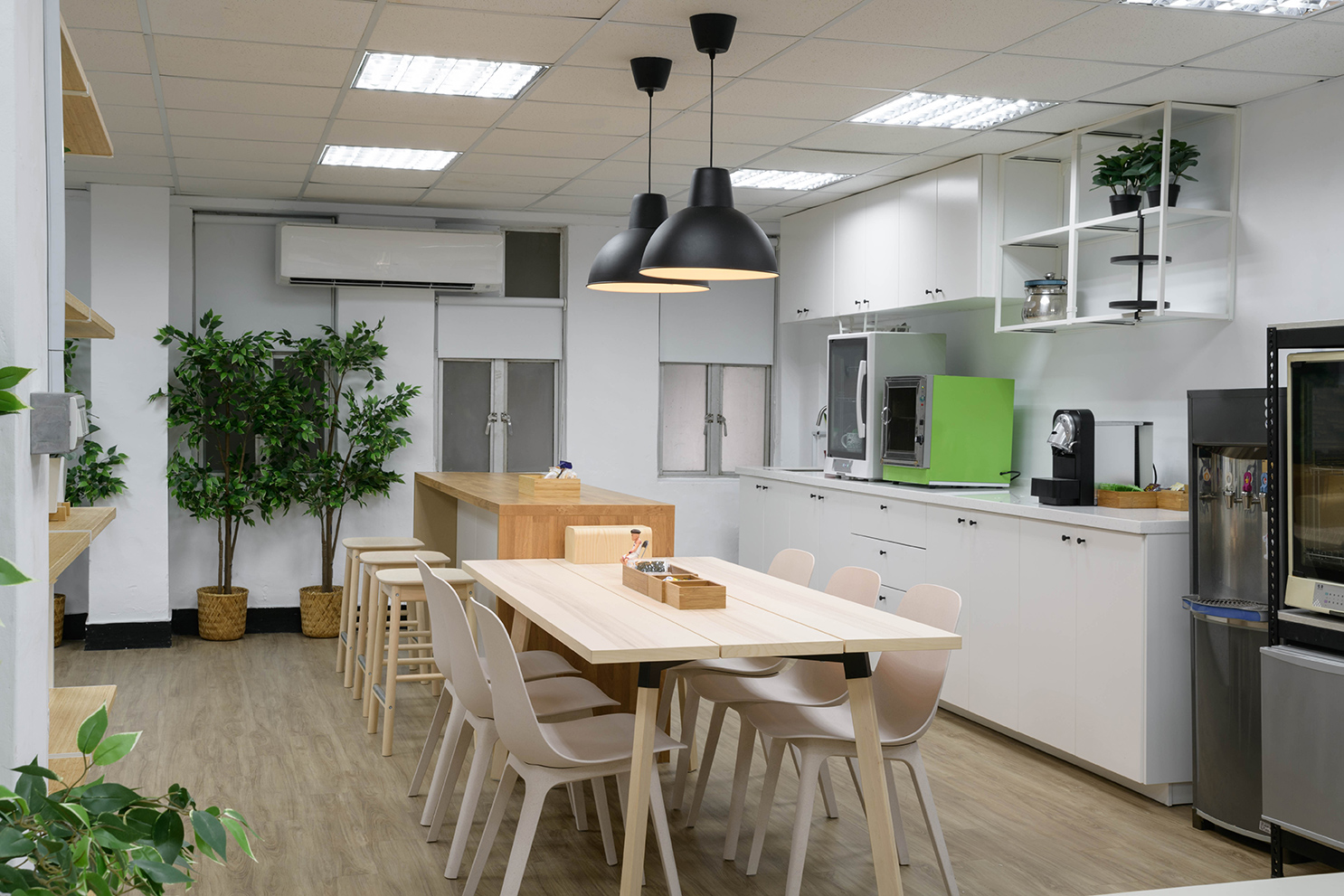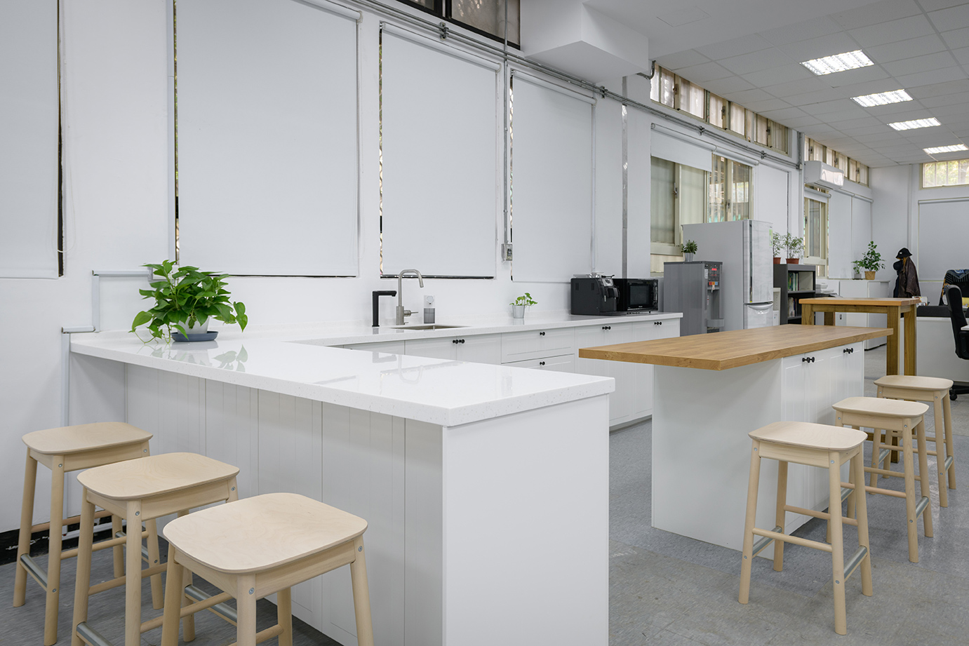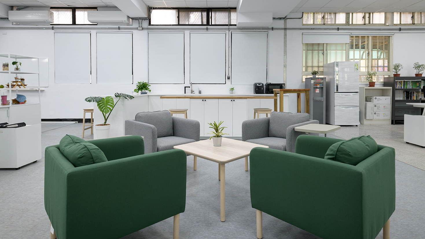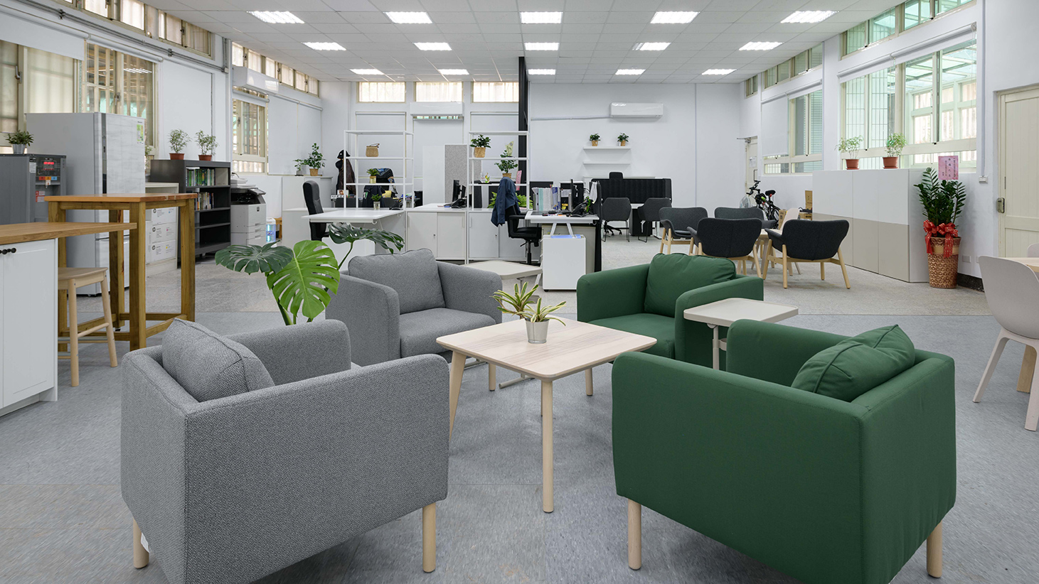環保局透過與IKEA企業業務合作,建立生態友好的示範工作環境,以改善員工健康、提高生產力,讓辦公室整體氛圍煥然一新! IKEA企業業務商業空間設計師將茶水區設計成互動區,並在工作區搭配穿透性收納櫃,使整個空間既開闊又可以符合不同使用目的,員工可以在用心安心工作之餘,也能與同事輕鬆互動交流,激發未來合作和創新的可能性!本專案也呼應了環保局為其他單位帶來正向的示範的願景!