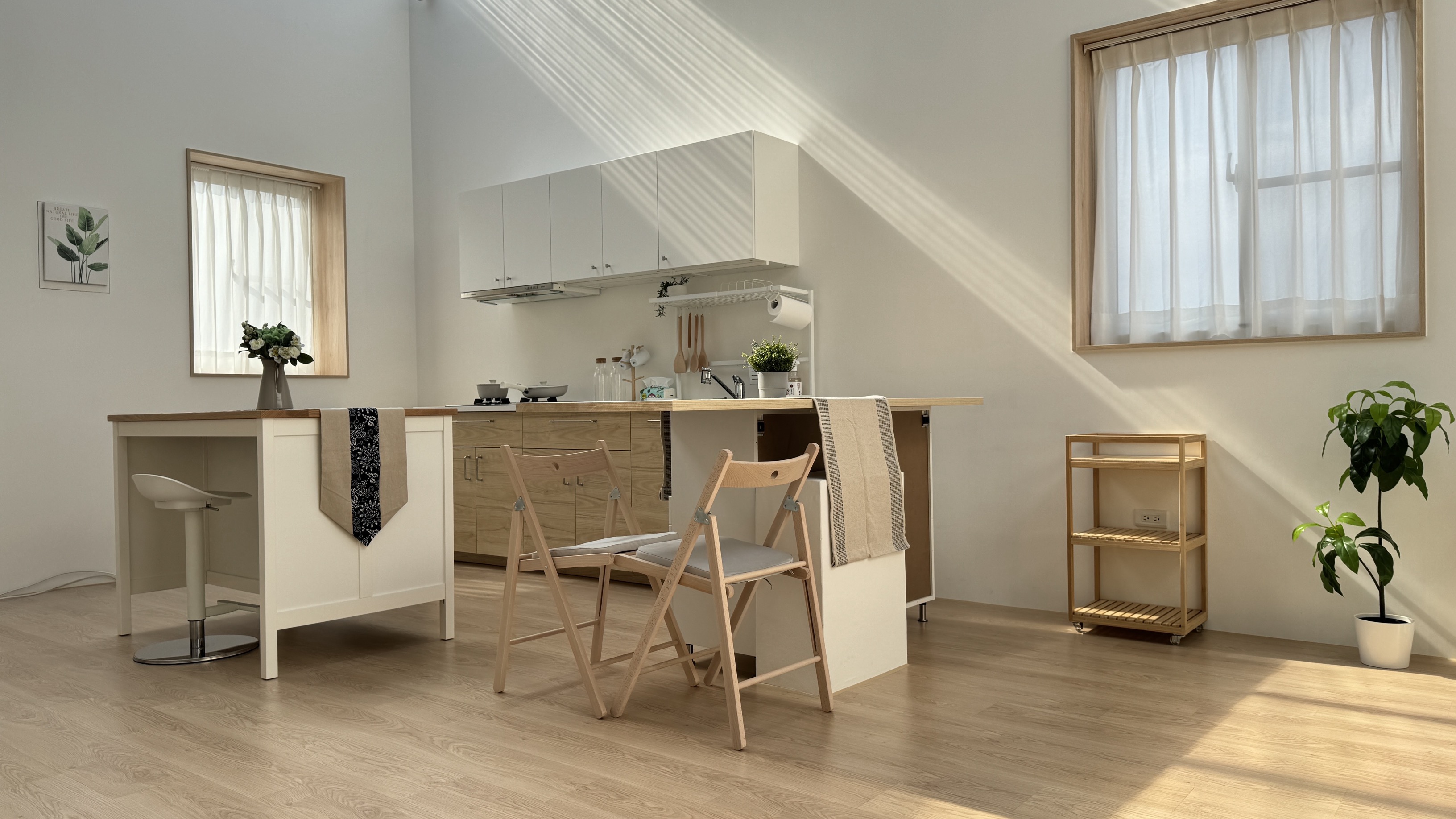 與IKEA企業業務合作下,其品牌JOJOGO打造了一個且如家居般溫暖的攝影棚。以簡約北歐風格,包含了明亮的採光、自然的木質傢俱與綠植栽裝飾。因大量的空間留白,使空間看起來擁有通透感,讓居家視野放大。小坪數的空間,也會因為北歐風格的設計,使得空間規劃如同大坪數般的寬敞。