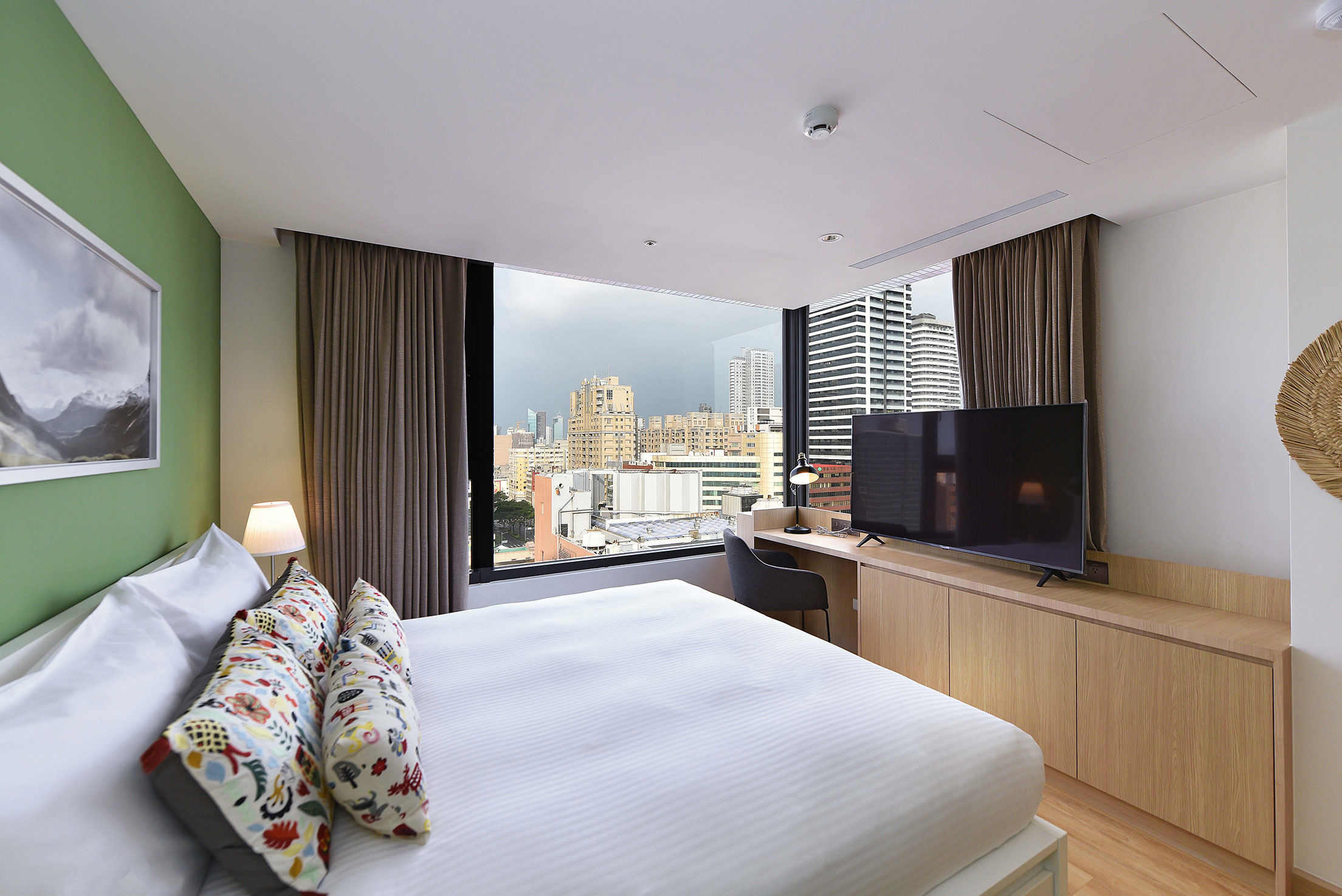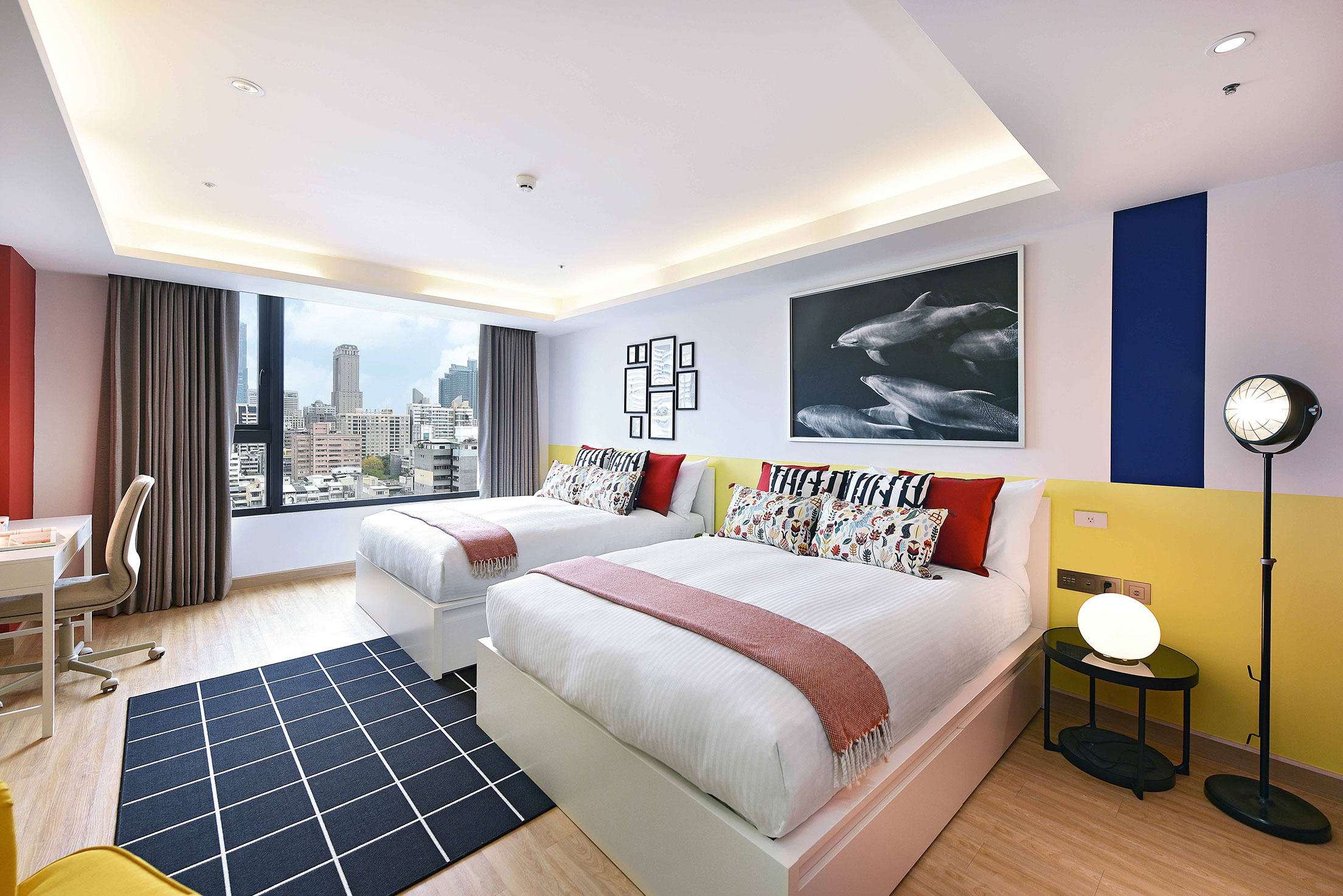 福容徠旅高雄,此次邀請IKEA企業業務團隊設計之四大主題房,不但展現年輕、時尚、環保、創新的品牌價值;也為旅客帶來多樣化的住宿體驗。 「STUGA」(小屋)對應北歐風,以藍紅黃三原色堆疊出活潑的空間。「TAVLA」(繪畫)則以博物館為題,搭配灰黑、微金色調的家具營造高級感。「NATUR」(自然)利用奶茶色的布料沙發、藤編扶手椅和木質茶几來帶來自然療癒的感受。「BLÅHAJ」(藍鯊)懸掛IKEA經典鯊魚填充玩具,彷彿置身海底世界。