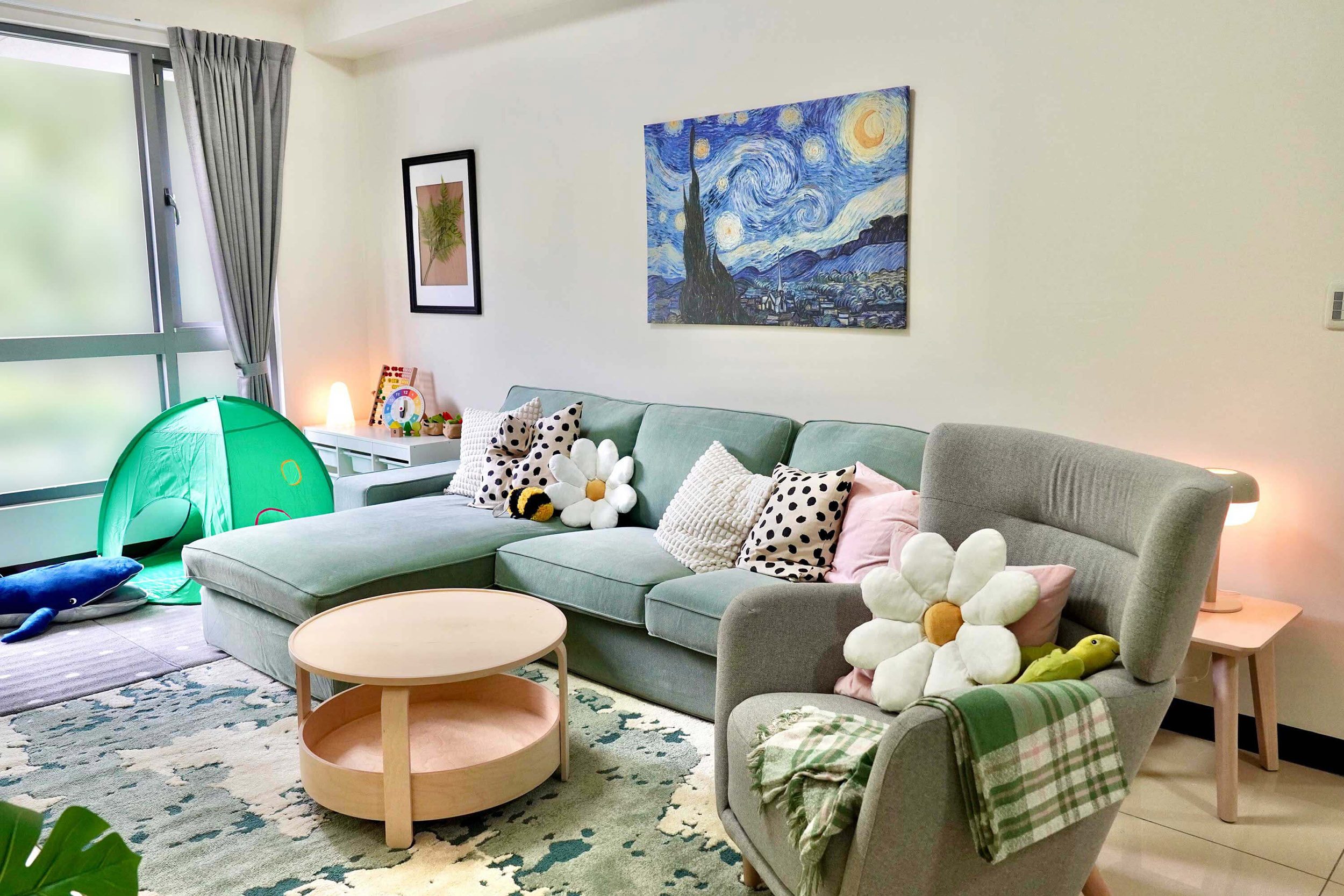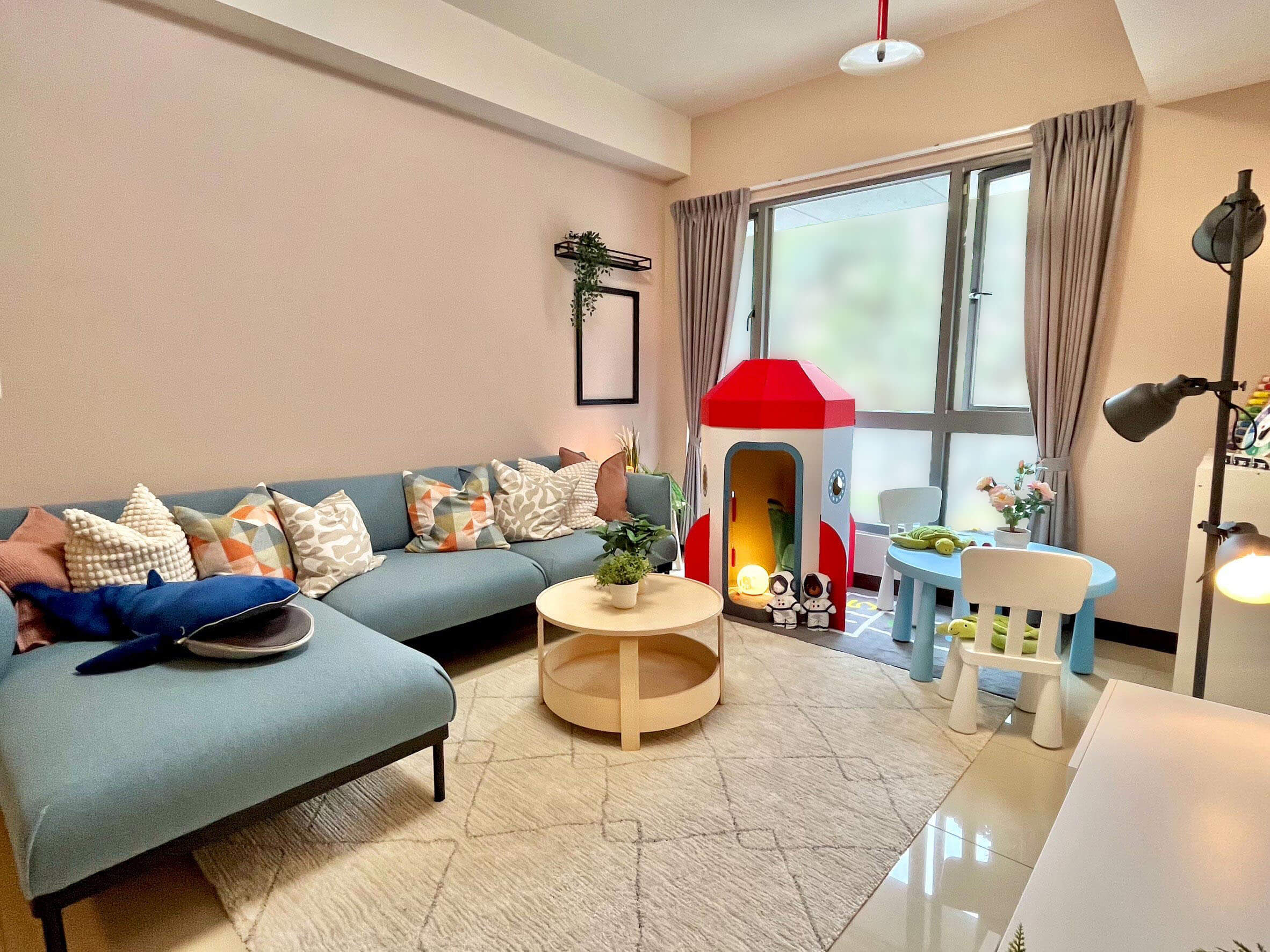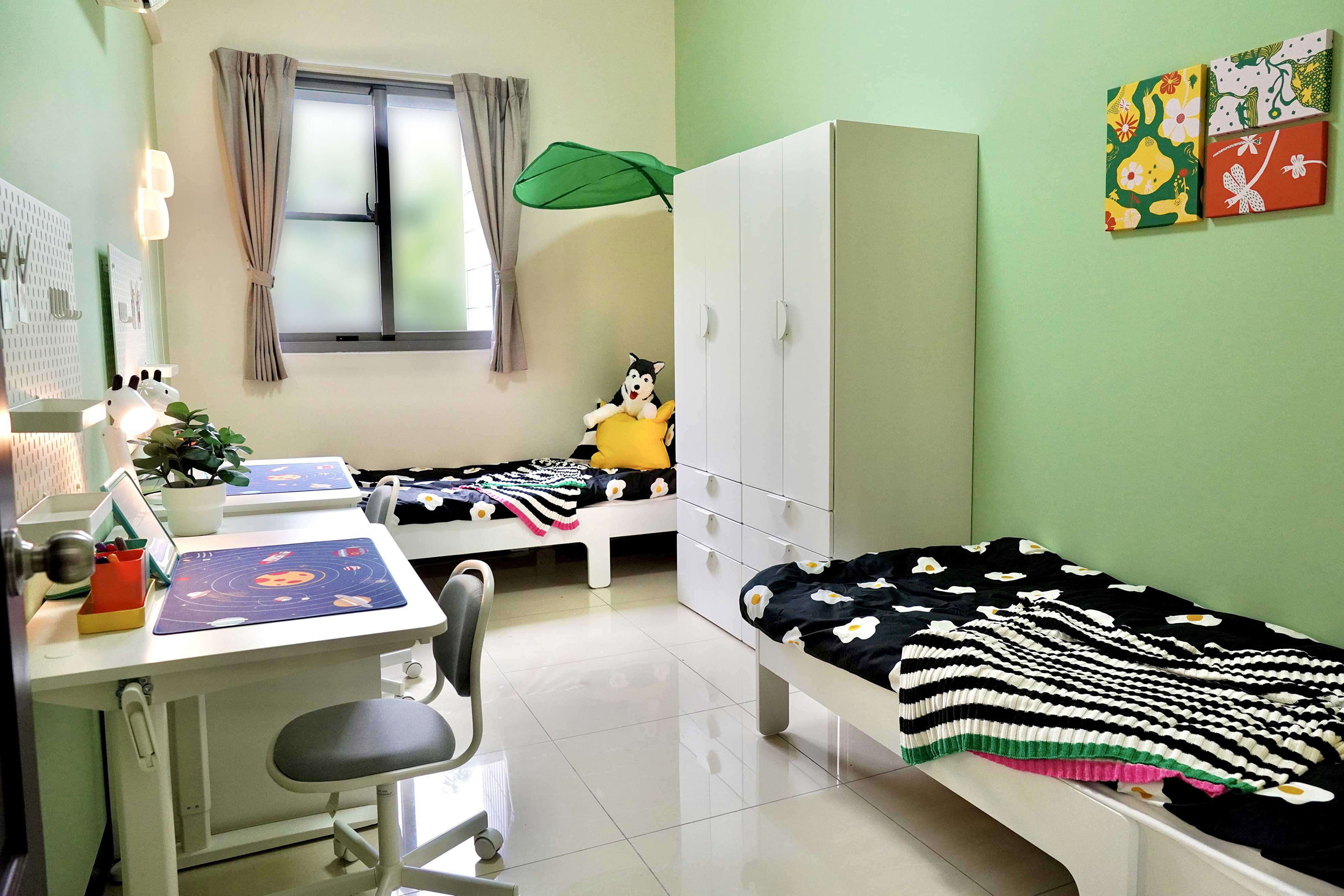 設計靈感來自孩子成長過程中最熟悉的安全感 - 一個溫暖的擁抱,透過柔和的大地色與自然材質,慢慢鋪陳出安心放鬆的居家氛圍。為滿足不同年齡層的使用需求,設計師挑選多款IKEA人氣家具,從具收納功能的床架、依人體工學設計的書桌椅,到高耐用度的收納系統—,讓空間能隨著孩子成長靈活調整。 考量安全性,導入多項兒少友善設計:圓角家具、穩固的五金配件、可調式照明,以及收納導向的布局,協助孩子養成良好的生活習慣。