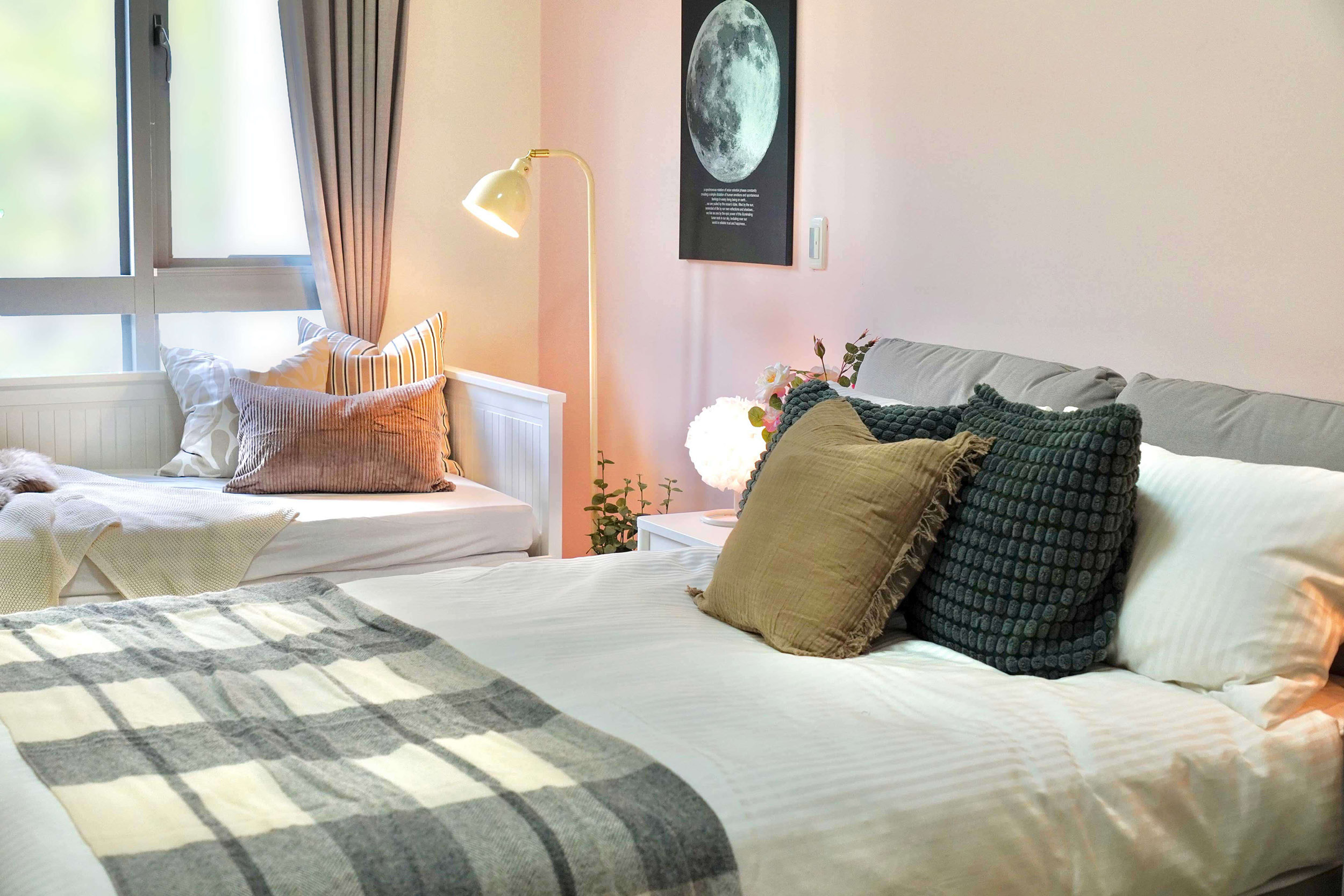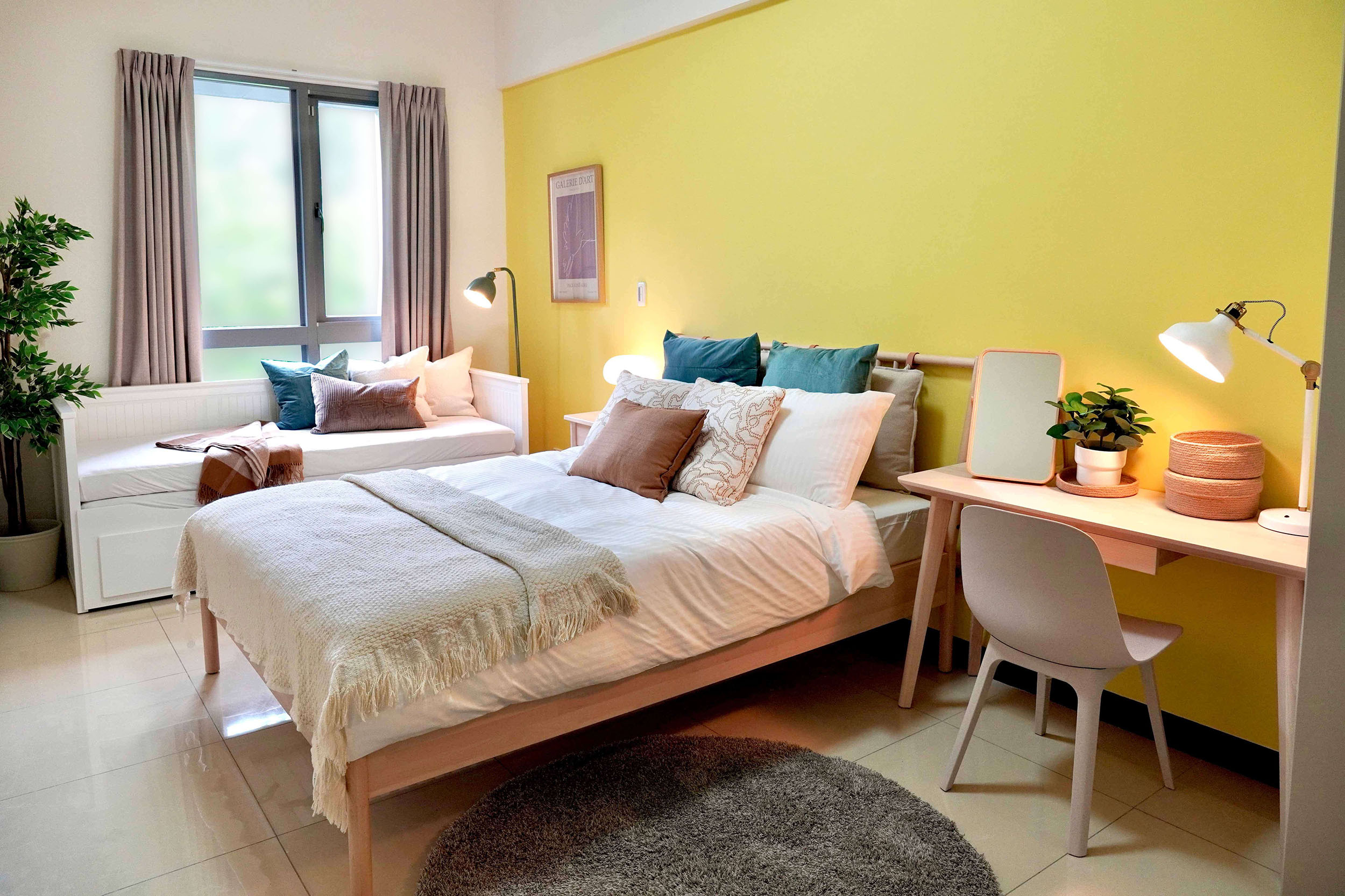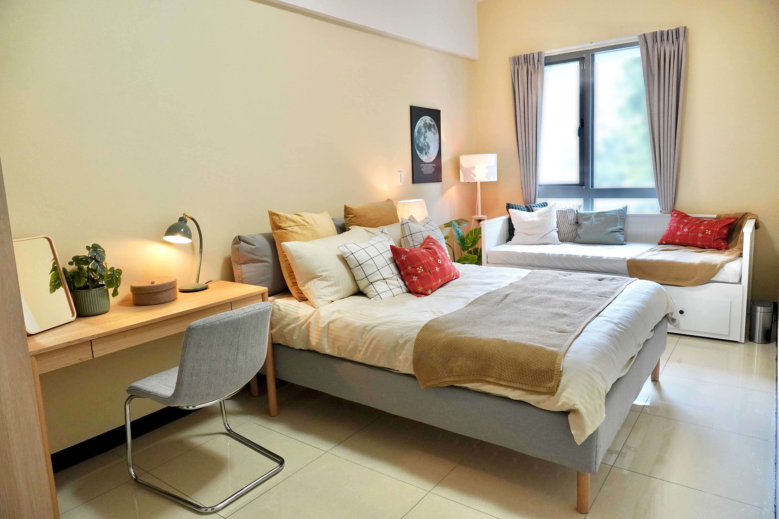 設計靈感來自孩子成長過程中最熟悉的安全感 - 一個溫暖的擁抱,透過柔和的大地色與自然材質,慢慢鋪陳出安心放鬆的居家氛圍。為滿足不同年齡層的使用需求,設計師挑選多款IKEA人氣家具,從具收納功能的床架、依人體工學設計的書桌椅,到高耐用度的收納系統—,讓空間能隨著孩子成長靈活調整。 考量安全性,導入多項兒少友善設計:圓角家具、穩固的五金配件、可調式照明,以及收納導向的布局,協助孩子養成良好的生活習慣。
