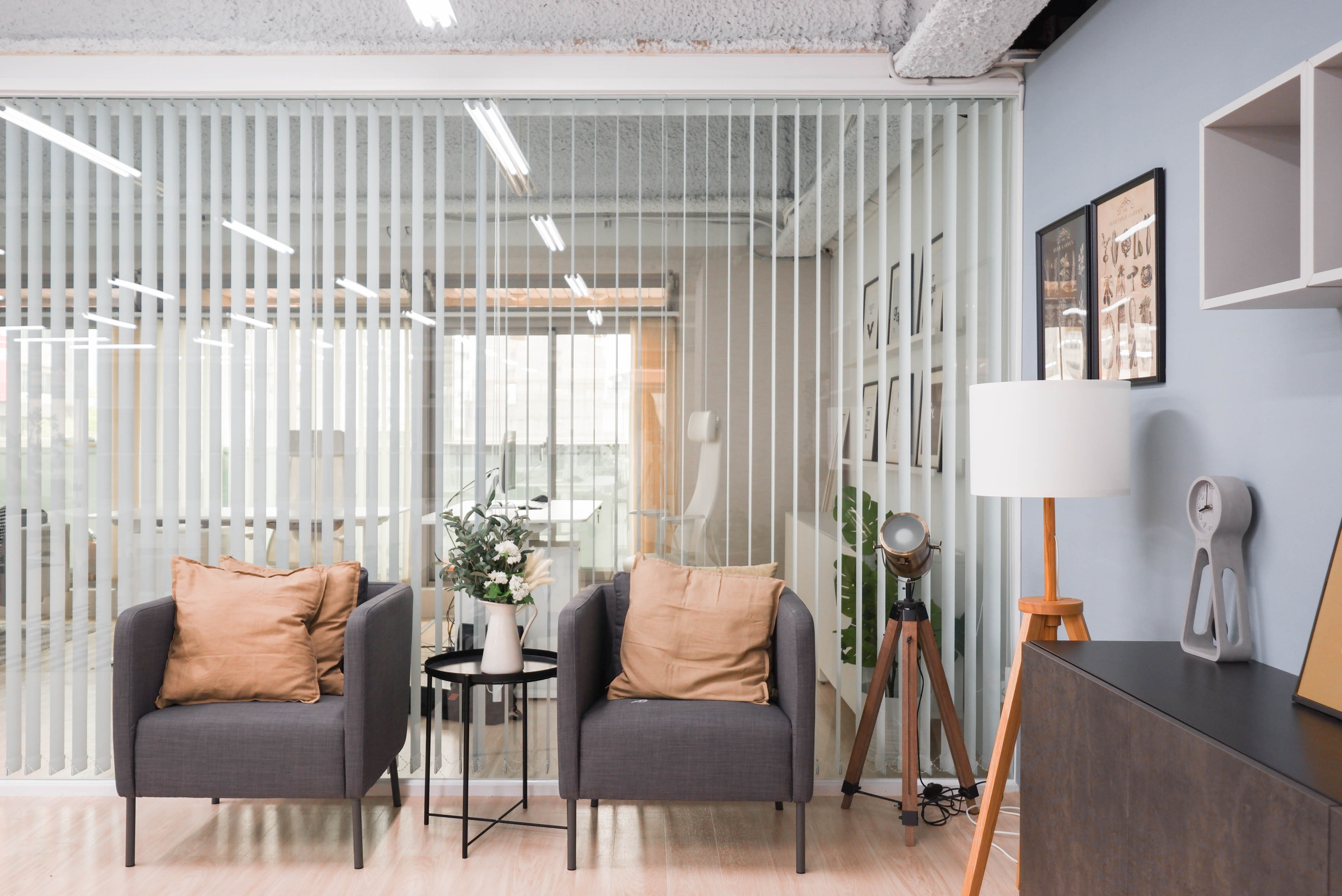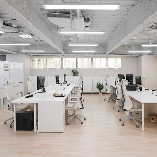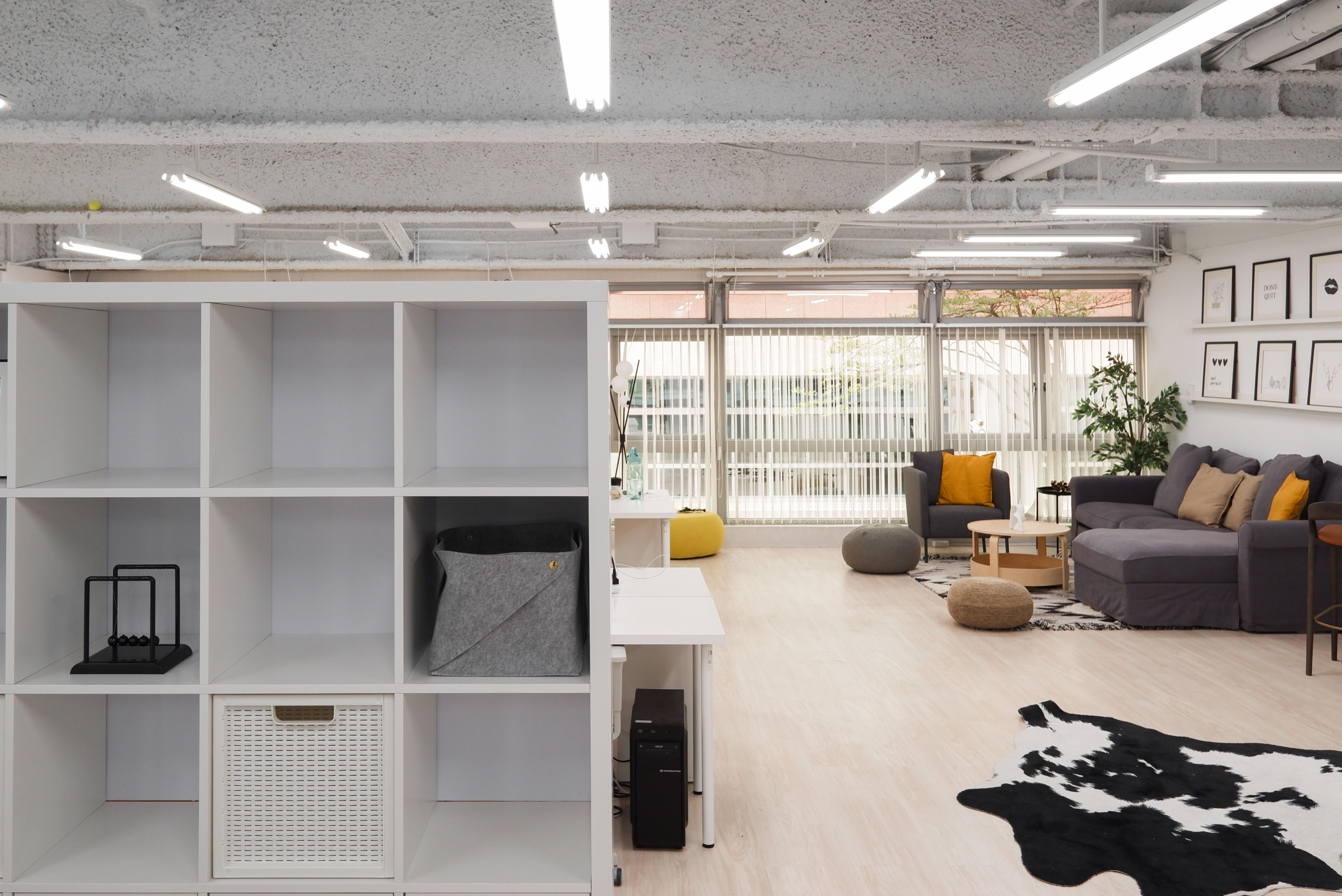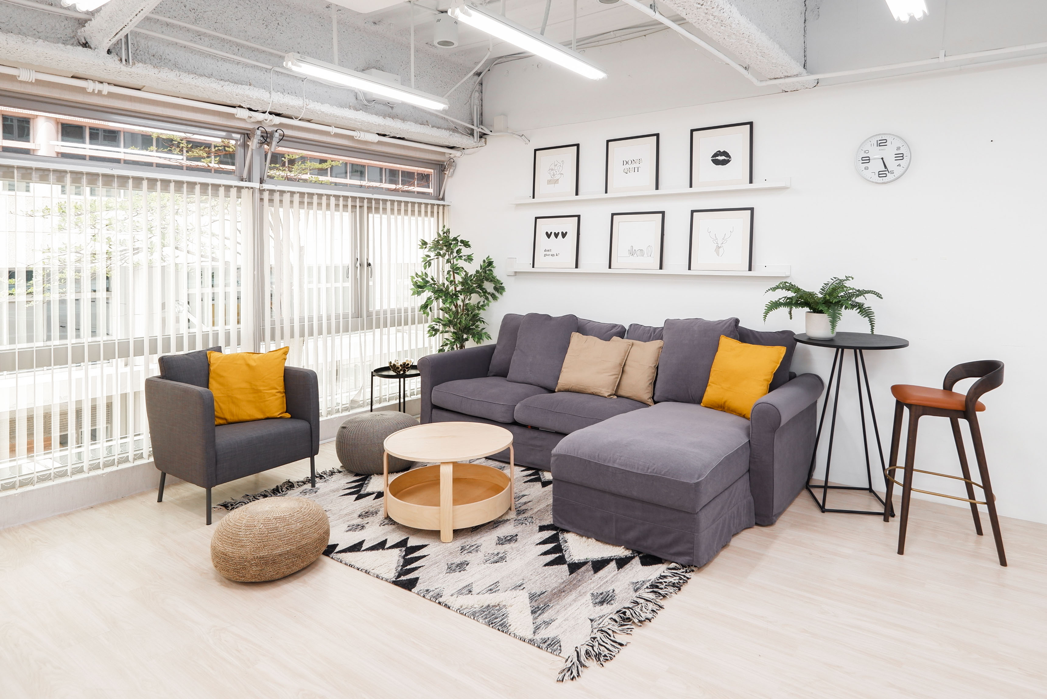 員工辦公區則因應未來擴張需求,設置多張桌子打造共同協作空間,便於獨立作業和團隊討論。同時選用人體工學的辦公椅,提升員工舒適度和生產力。休閒空間包含慵懶沙發區和開放式吧台,提供靈感來源和放鬆場所;更衣室搭配可自行設計的層架組進行收納。