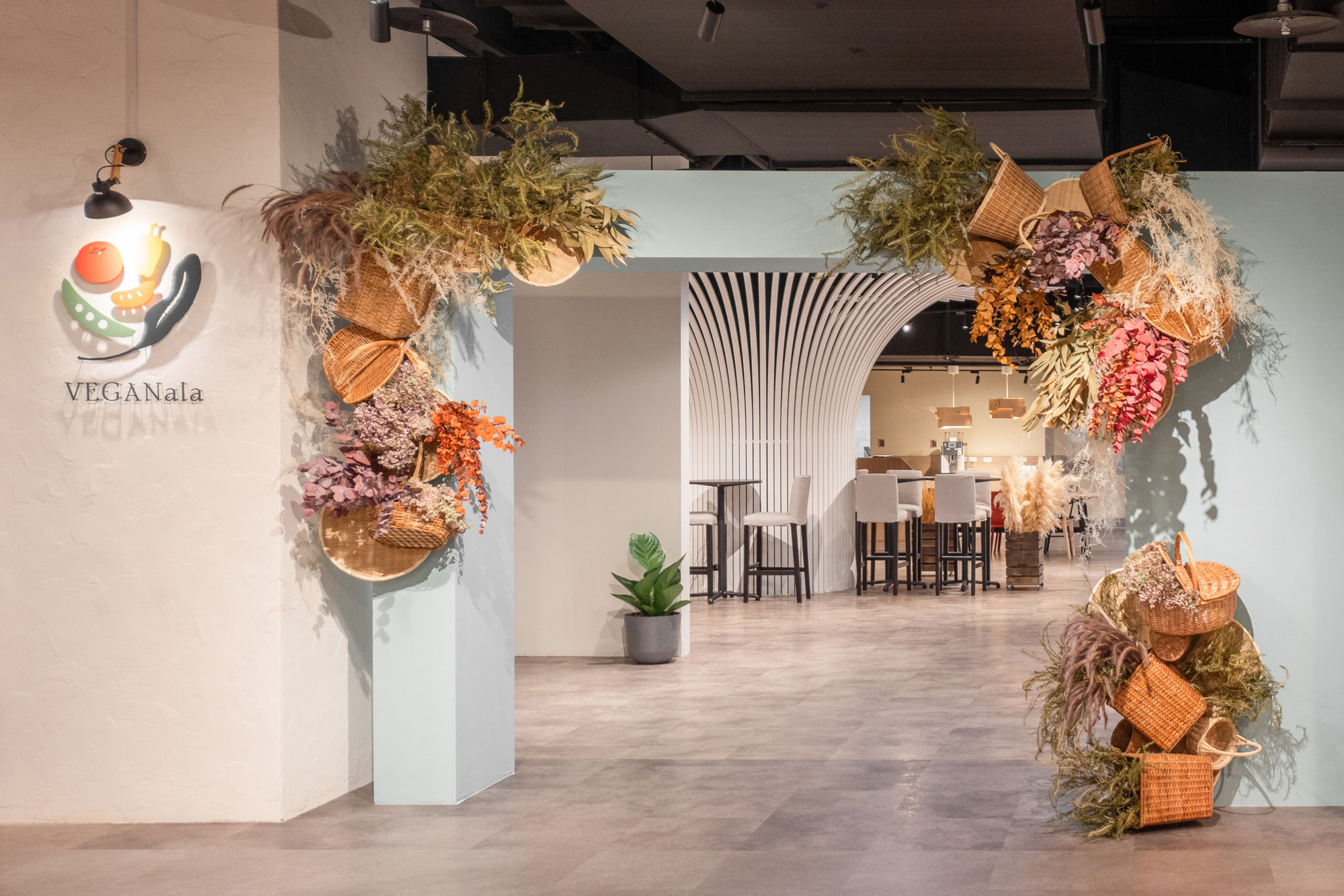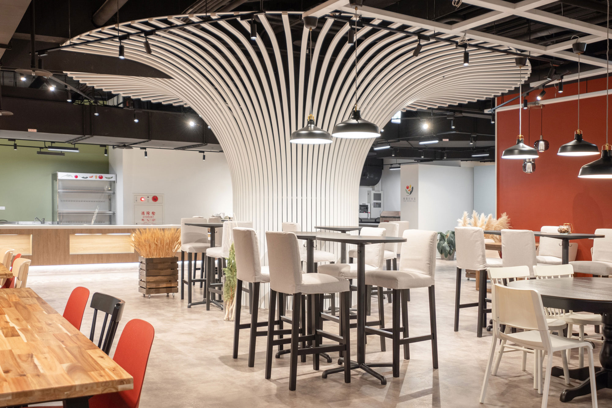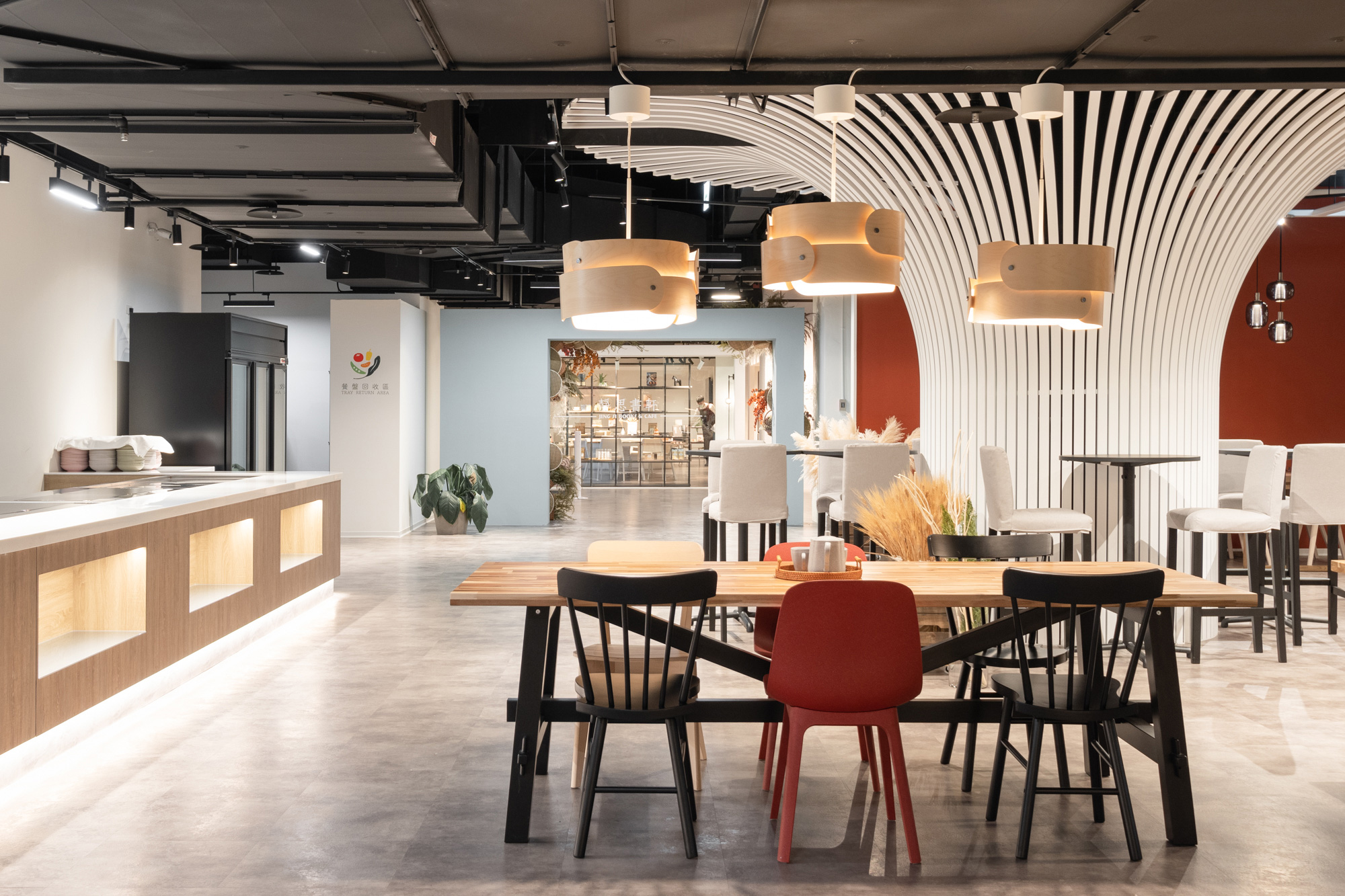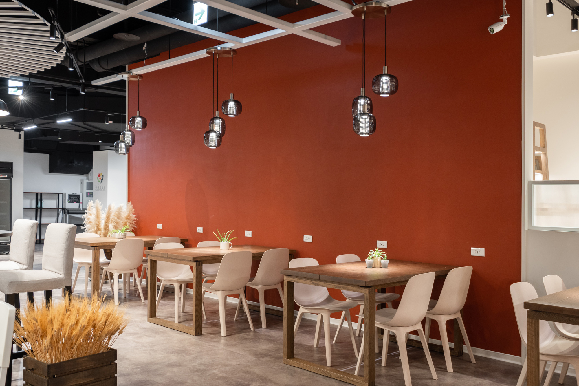 植境致力於永續環境的推廣與實踐,落實減碳的行動和新型態植物飲食,與善菓集團合作,共同推廣plant based飲食文化。室內空間設計以植物色系、大地色系為基底,高低座位的層次讓視覺更富活躍,搭配多元型式的吊燈讓每一道料理更添美味。
