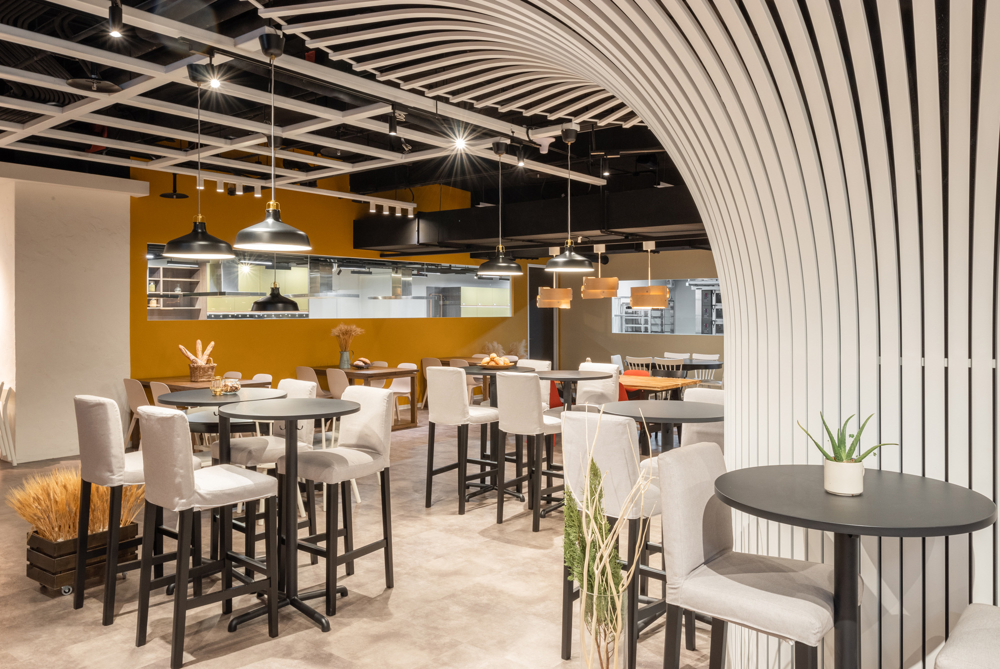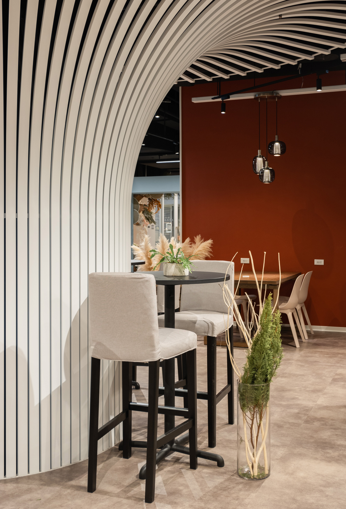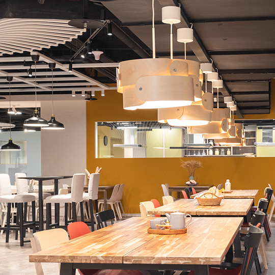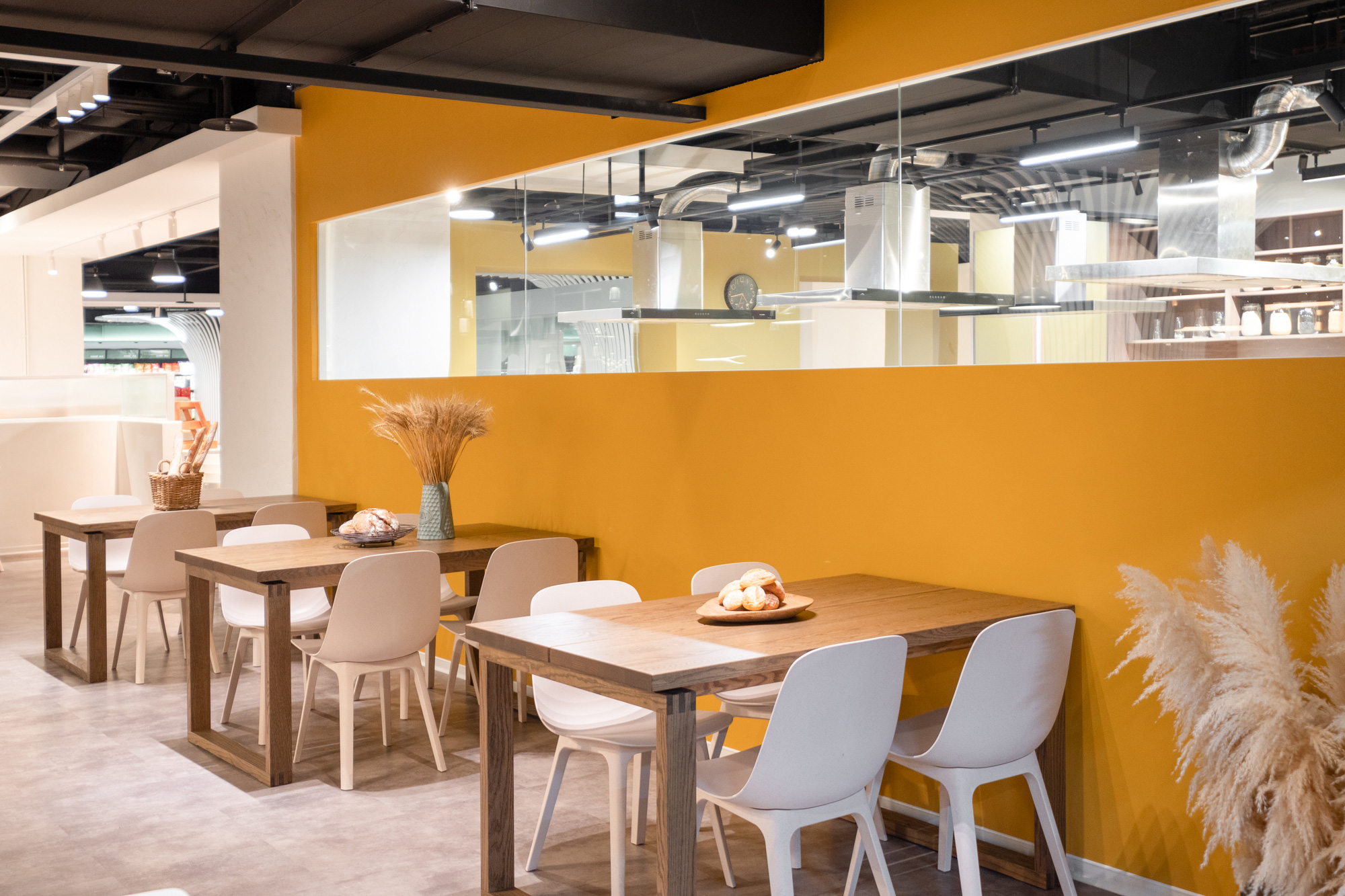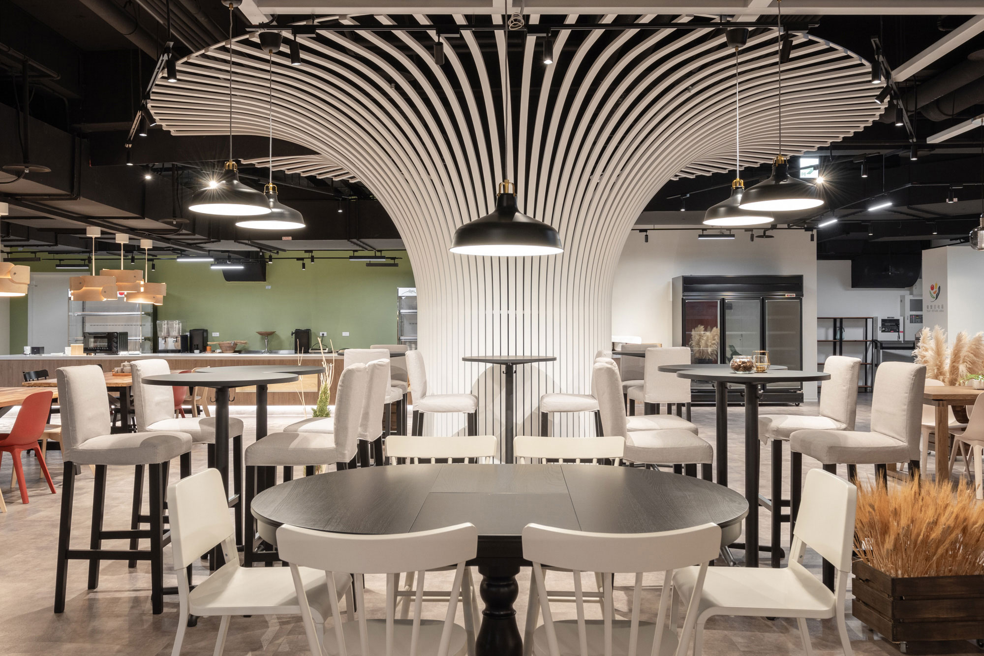 植境致力於永續環境的推廣與實踐,落實減碳的行動和新型態植物飲食,與善菓集團合作,共同推廣plant based飲食文化。室內空間設計以植物色系、大地色系為基底,高低座位的層次讓視覺更富活躍,搭配多元型式的吊燈讓每一道料理更添美味。