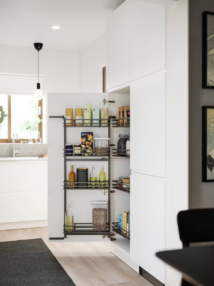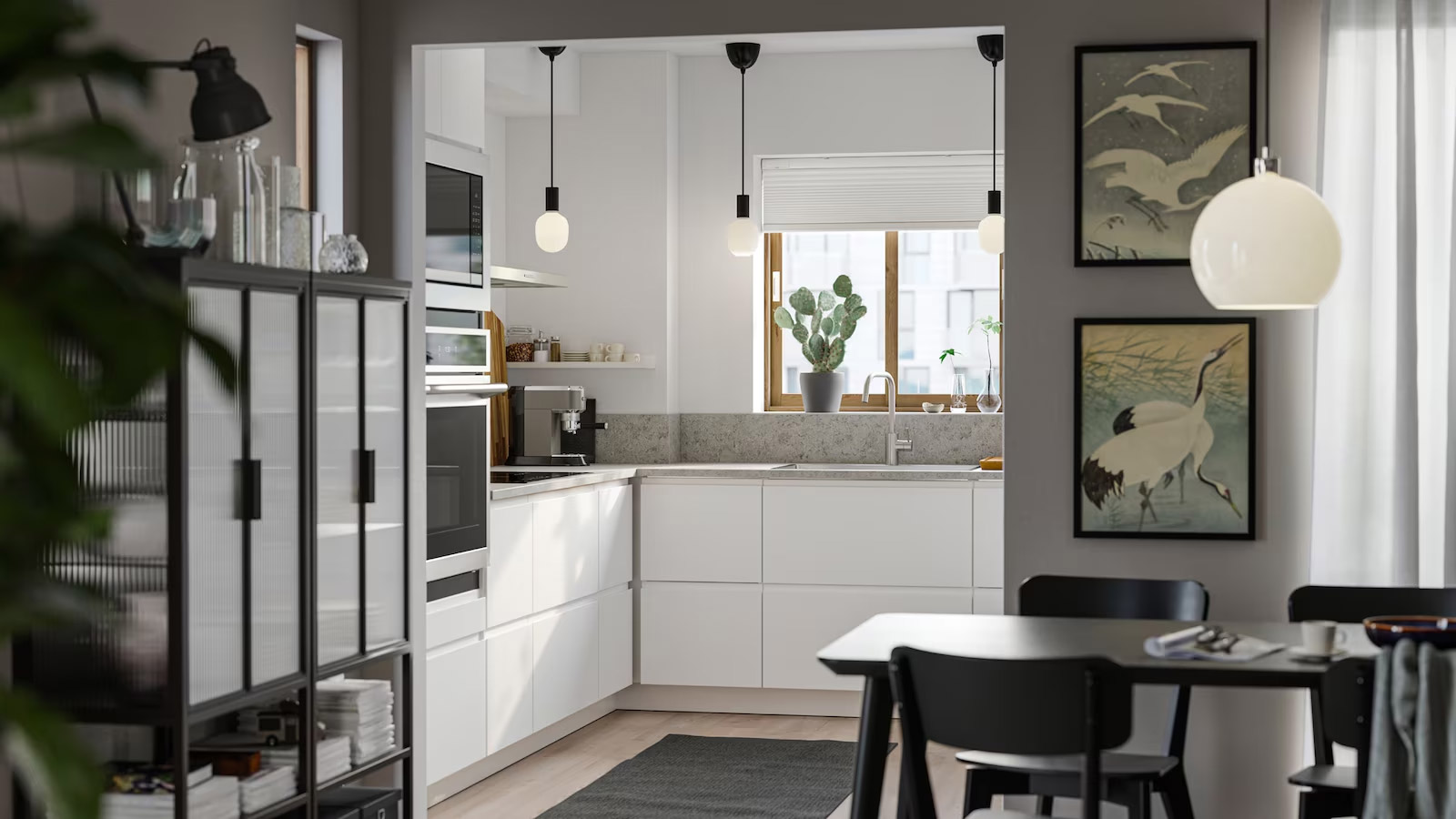 把最漂亮的物品放在玻璃門後,讓它們成為用餐時的美麗風景。為流暢設計增添些個人風格,佈置餐桌時也能更方便地取用餐具。附蓋黑色收納盒可用來分類收好小物,保持外觀整齊清爽。
