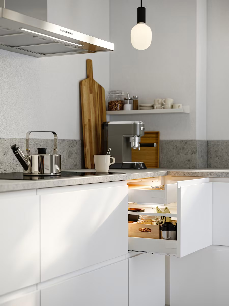 結合有型外觀和聰明規劃,再加上內部收納隔間,是打造整齊廚房的重要秘訣。精心設計的抽屜櫃,把常用物品放置在方便拿取的地方,準備早晨熱飲或烹飪晚餐都輕鬆便利。