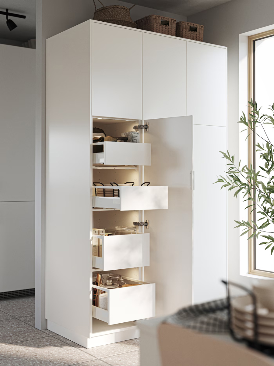 把家裡收拾整齊沒你想像中的那麼困難。首先,一定要充分利用廚房的抽屜和櫥櫃,規劃收納及回收區,讓餐具和廚餘不再無處安放。你看,抽屜裡面的分隔板其實與面板的風格相配呢。
