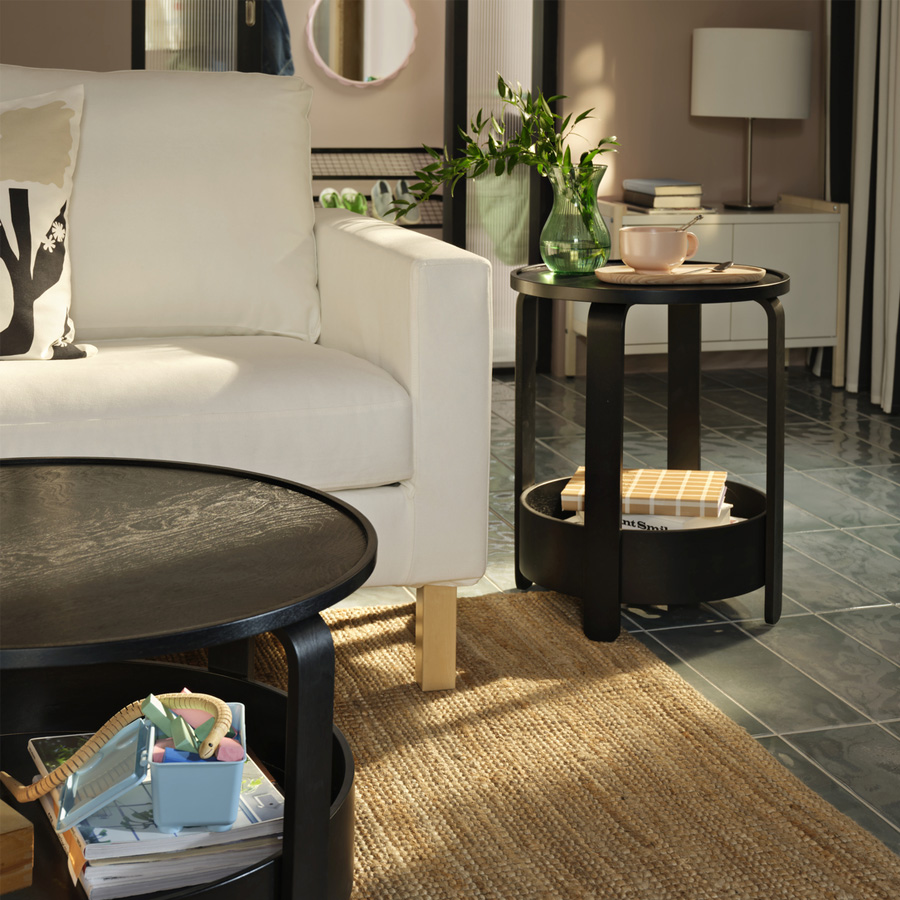 設計感十足的 BORGEBY 咖啡桌,底部置物層方便收好各種玩具、編織籃、書和雜物;整體視覺更清爽,也能一眼找到想拿的東西。