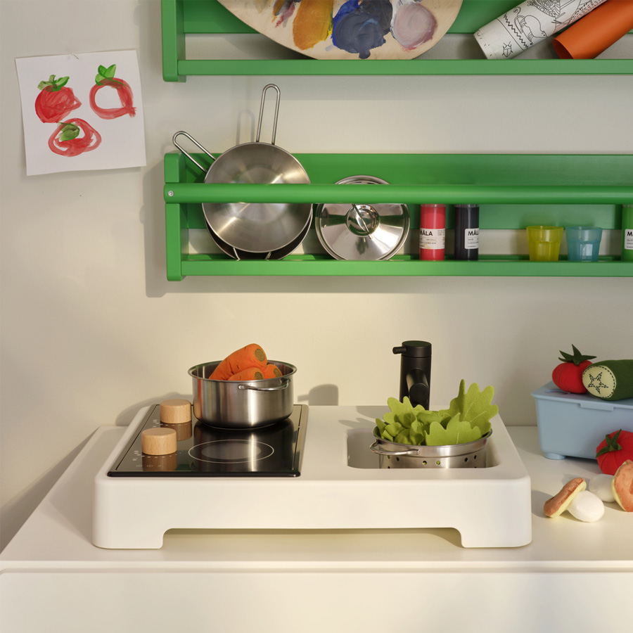 STENMUS 玩具廚房,鍋碗瓢盆一應俱全。即使在小空間,也能迅速打造孩子專屬的小天地。