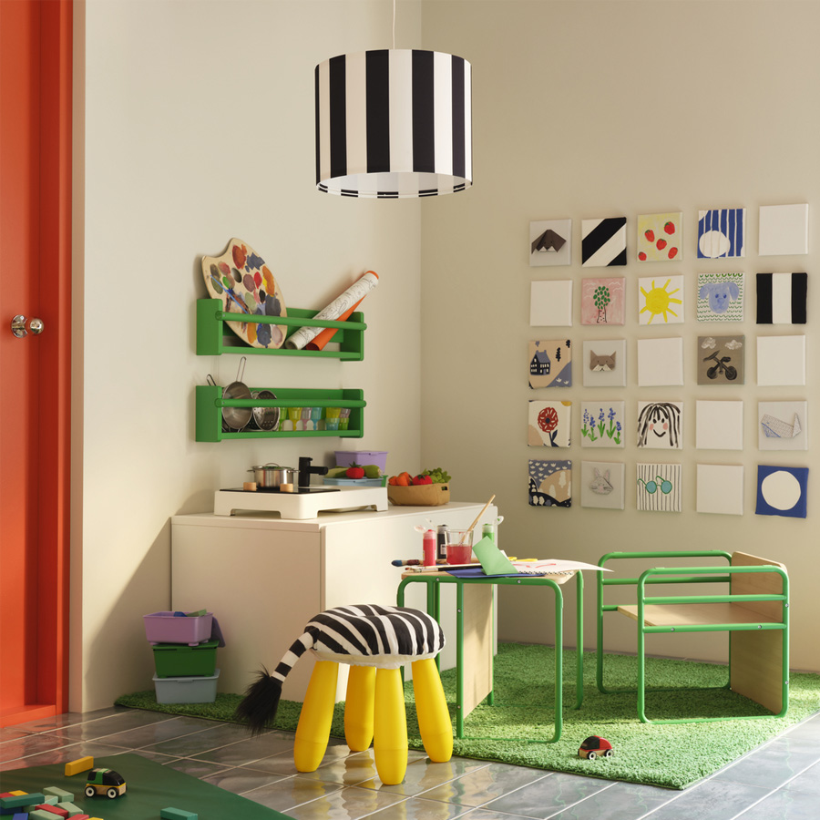 放置在家中一角,打造多用途又便利的創作區;推到需要的位置,放下桌板、拿出原本堆疊收納的 KYRRE 椅凳,就能開始使用。