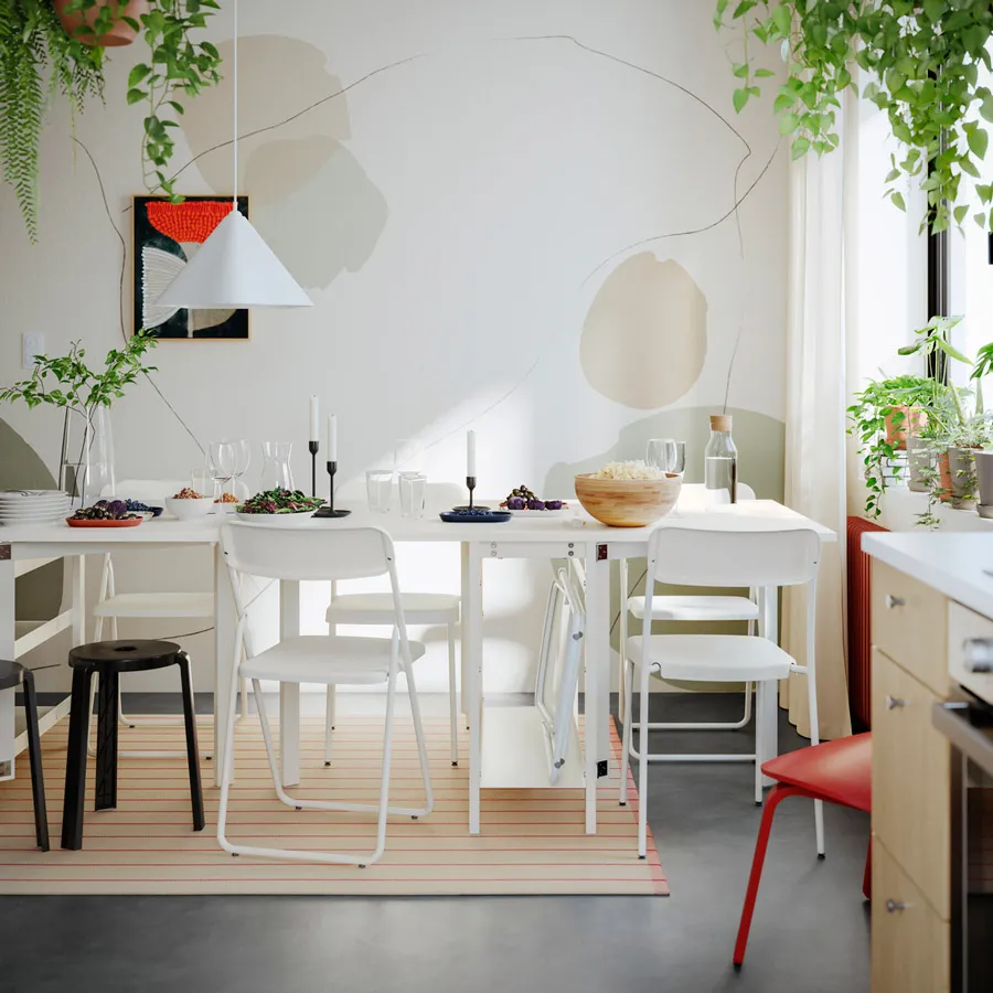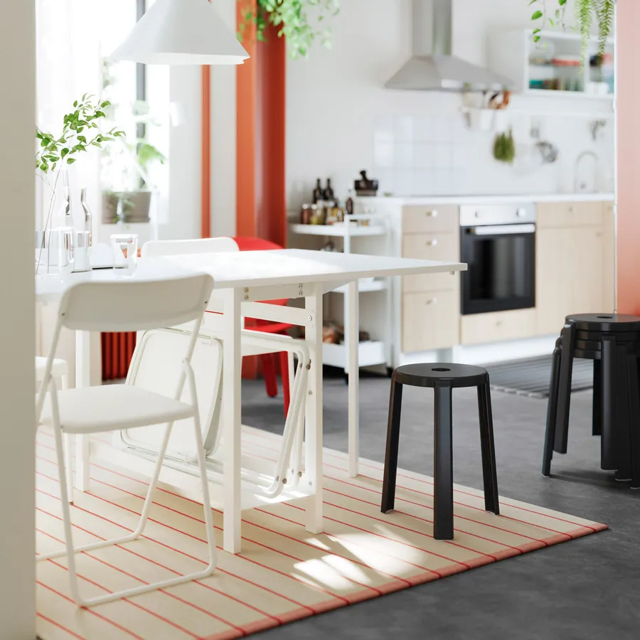 無論是用餐、趕小組報告、生日聚會,或者深夜暢聊,餐桌有著多樣化的面貌,是生活裡不可或缺的重要空間。IBBARBO 椅凳隨時待命,能堆疊收納,是客人來訪時的待客好幫手。三腳設計在不平的地面上也能穩固站好,非常適合共居空間;在這裡「靈活應用」不是奢侈,而是必備條件。