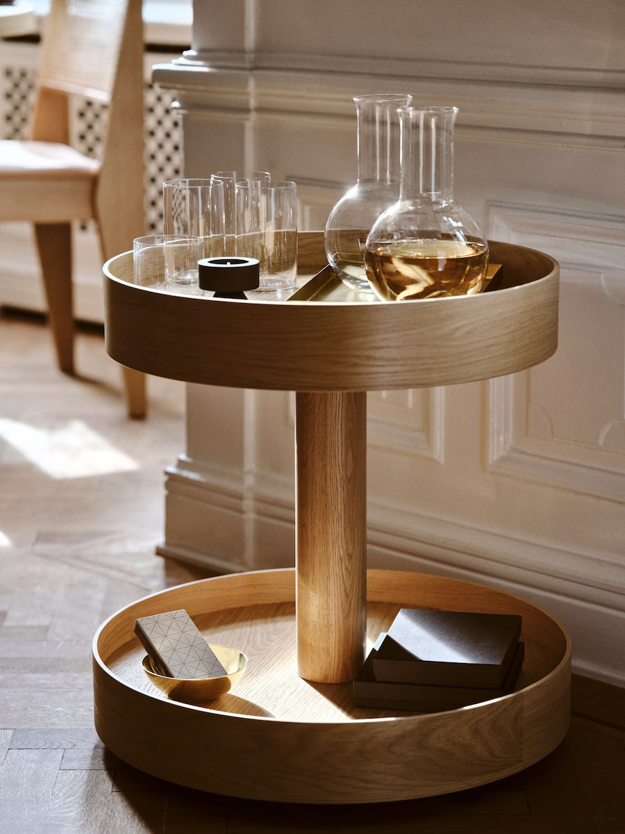 活動邊桌小兵立大功,無論主桌大宴隨侍,或餐後分組小酌待命。遞送飲品和點心即傳即到,隱藏輪腳可鎖定,桌緣高起具防掉落功能,簡約設計,收納有型。