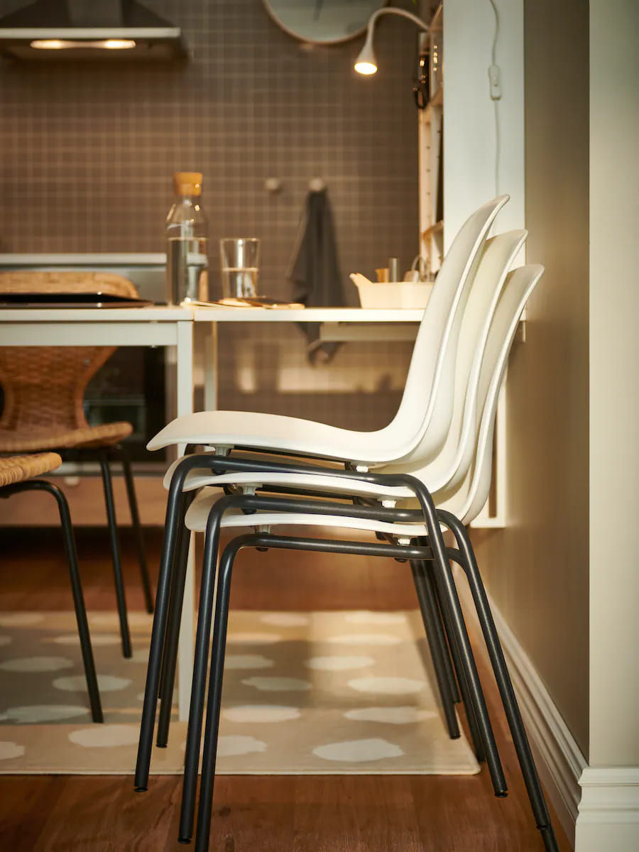 集時尚風格、舒適享受和靈活功能於一身的白色椅子容易收起,使用時卻能營造悅目對比,也能提供良好的腰部承托。此外,也可以搭配不同的座位和底框,按照個人需要打造合適的設計。