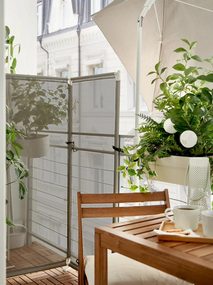 提高私隱度的屏風變成靈活的隔間,劃分出聚會的空間,讓大家在陽傘下相聚聊天,享用茶點,而另一面則是實用的洗衣區,同時感覺悠閒。巧妙分隔空間,便能擁有更寫意的生活。