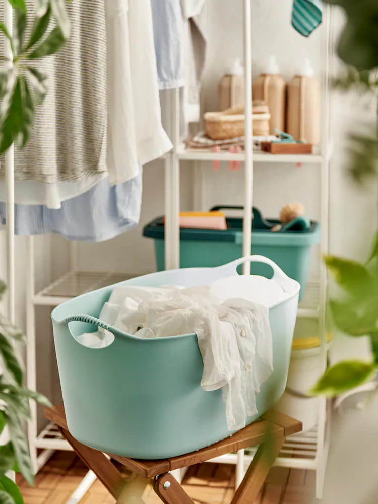 如何使放鬆休息的時光變得更美好?就是偶爾要努力工作!在陽台的一角添置容易整理的收納組合,節省空間之餘,也能收納衣物和洗衣配件。當然也可以加入一些綠色植物,注入清新綠意。