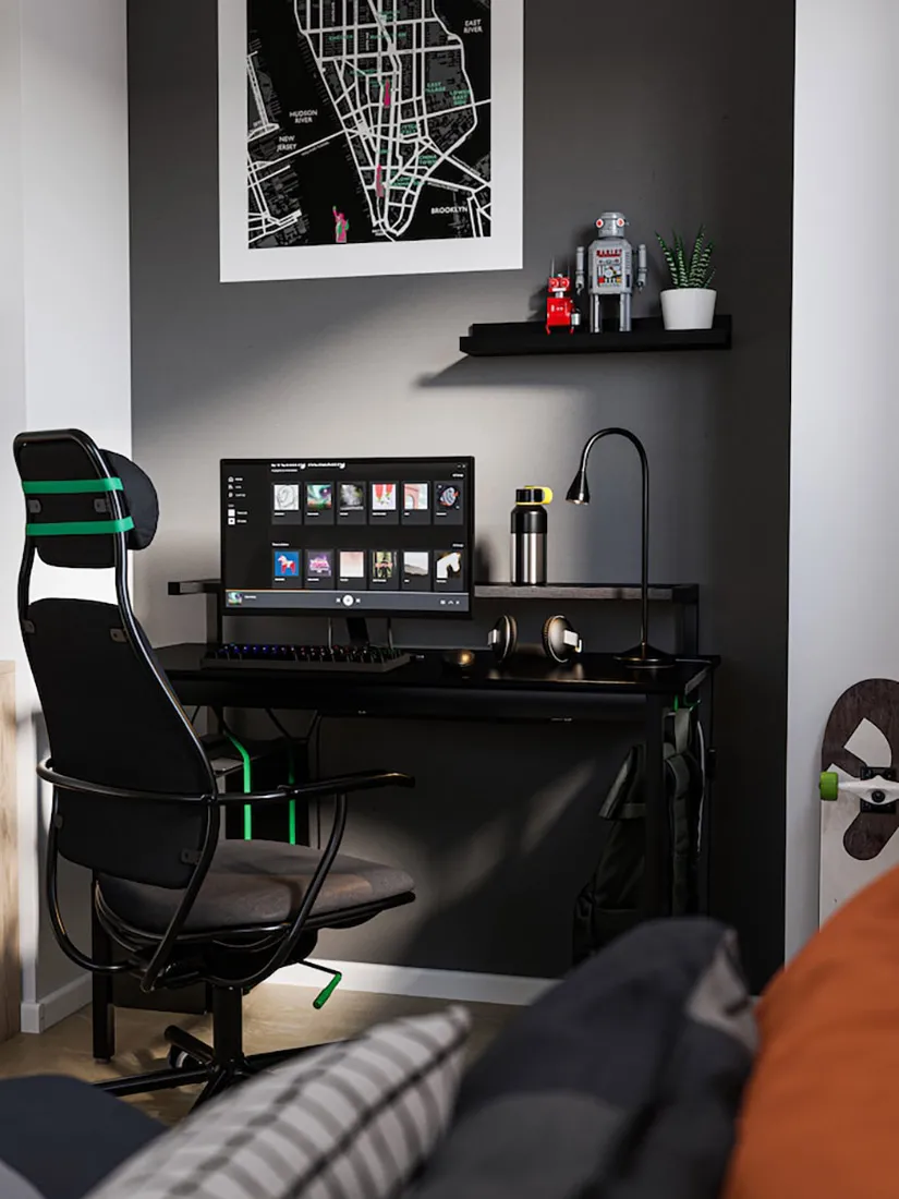 床或許是生活重心,但還是得有張書桌,就像是專屬駕駛艙,讓你在此掌控一切。選擇書桌時不一定要很大,只要能放下需要物品,就非常好用;搭配上方層架,多了些屬於你的個性舞台。別忘了:這是你的房間,你的書桌,也是你的生活!