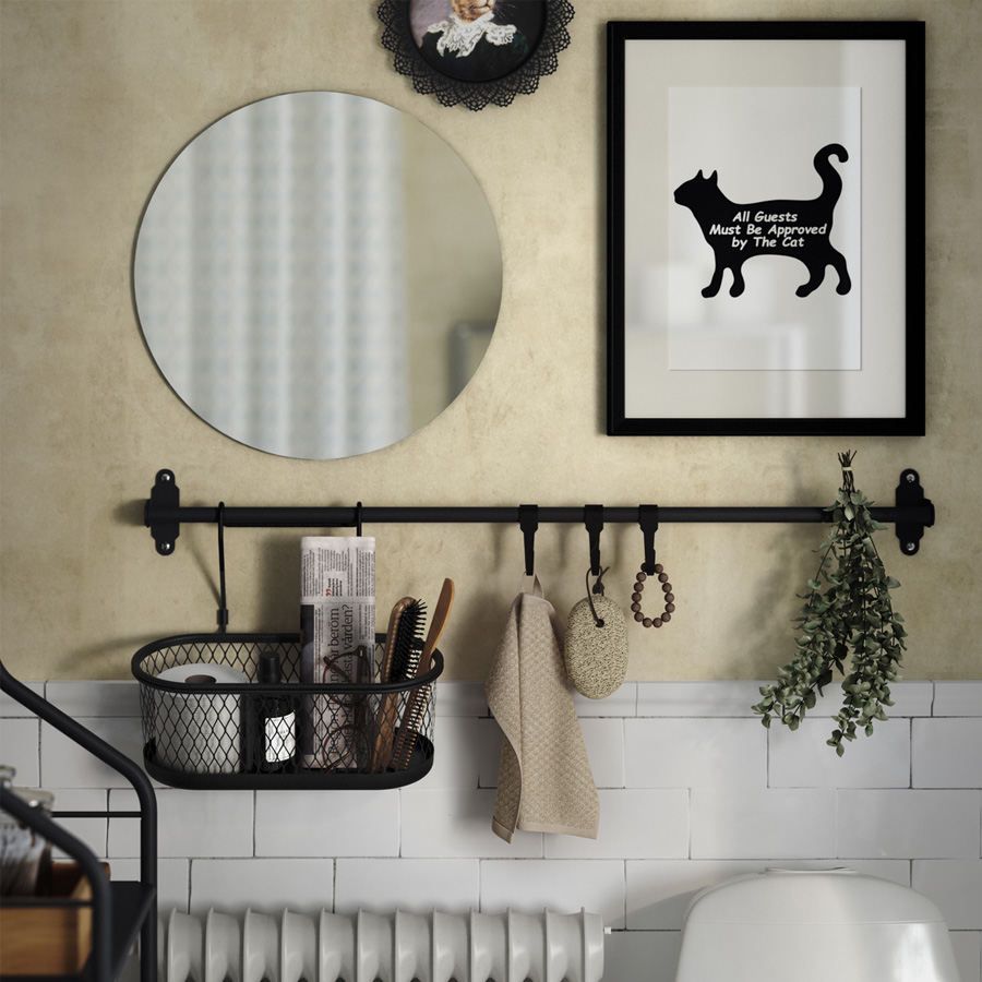 讓小衛浴空間煥然一新好方法,就是以堅固耐用的HYLLIS鍍鋅鋼層架組合存放清潔用品、衛生紙和大型物品,再用浴簾桿和浴簾輕鬆遮住雜物,讓空間回復整潔有序,連貓咪也能擁有私人空間!