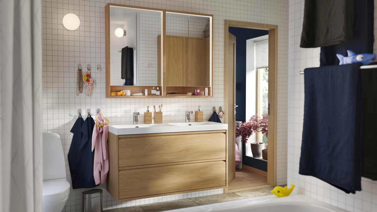 當全家人共享一間浴室時,需要智能家居方案來提高安全性,同時節約水電資源。附感應器的 BROGRUND 調溫水龍頭和 VALLHORN 無線運動感應器,永遠不必擔心燈光和水龍頭是否關好。