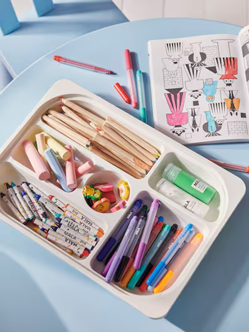 藝術創作總是會有些凌亂,但別擔心,TROFAST 收納系列幫你輕鬆整理!各種尺寸與明亮色彩的托盤和盒子,打造繽紛收納方案,整齊收好創作工具。