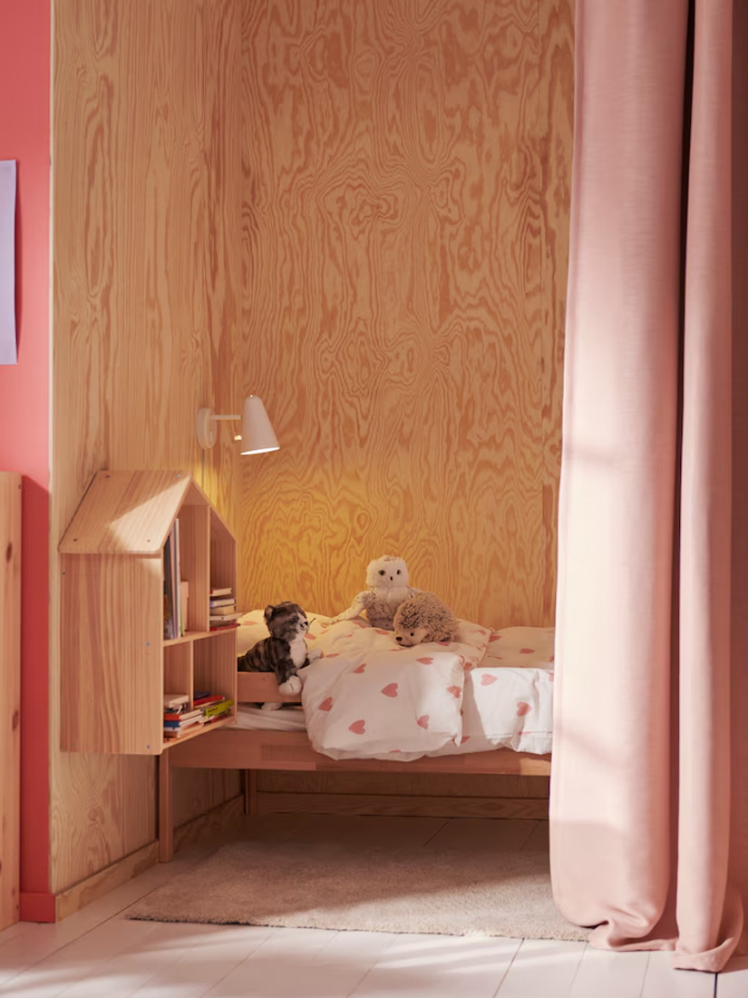 清爽整潔的休息空間,能幫助玩樂一整天的孩子安靜下來、好好休息。在床的周圍使用溫暖舒適的顏色與材質,如松木和大量的柔軟織品,再拉上窗簾、隔絕外界干擾,就能讓孩子心滿意足地進入夢鄉。